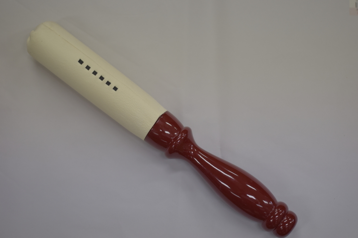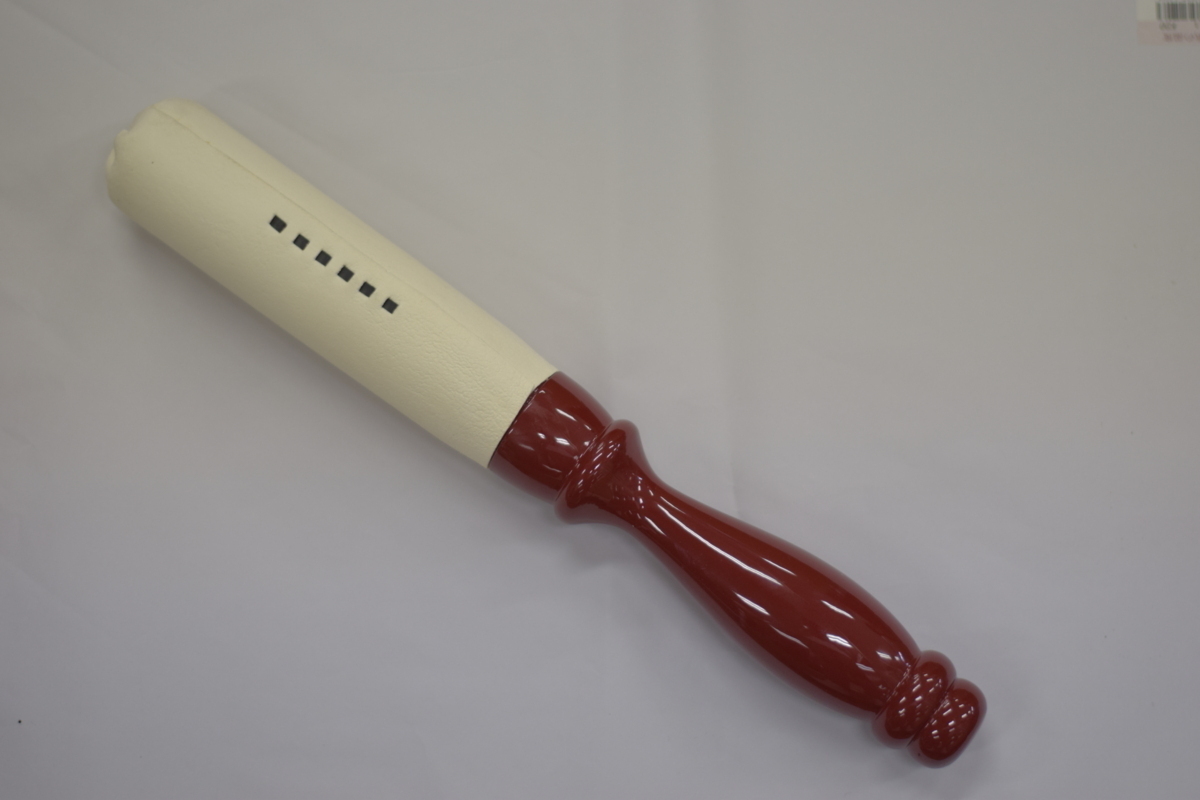 オリンをたたく棒です。朱塗り皮巻リン棒