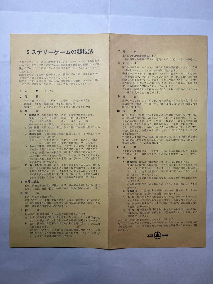昭和レトロな推理ボードゲーム「ミステリーゲーム Mystery Game」です。