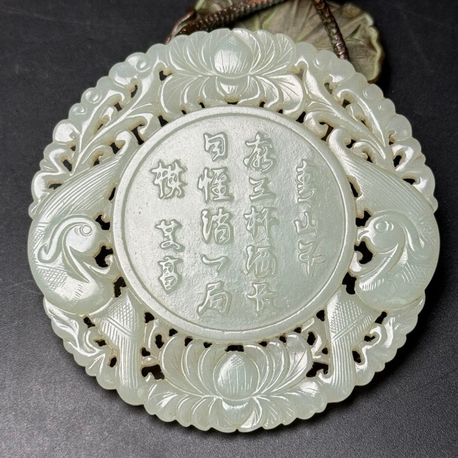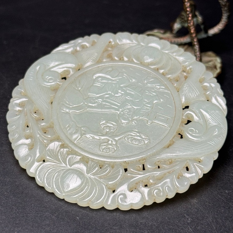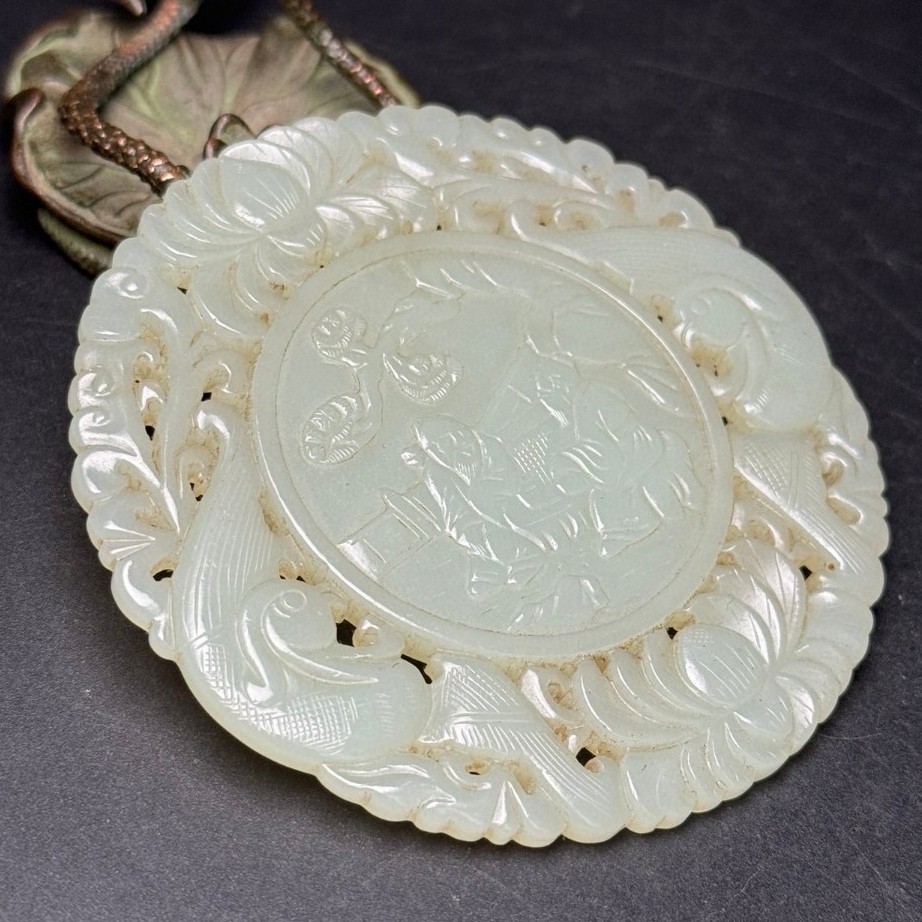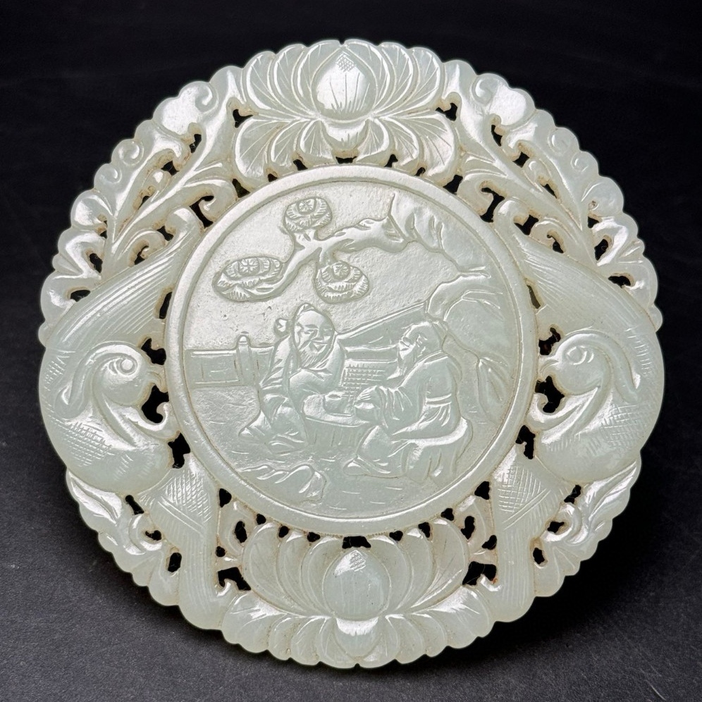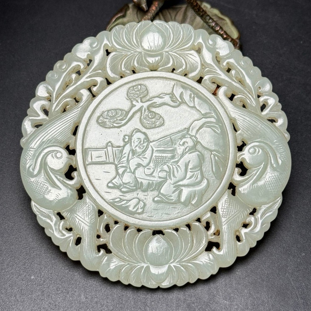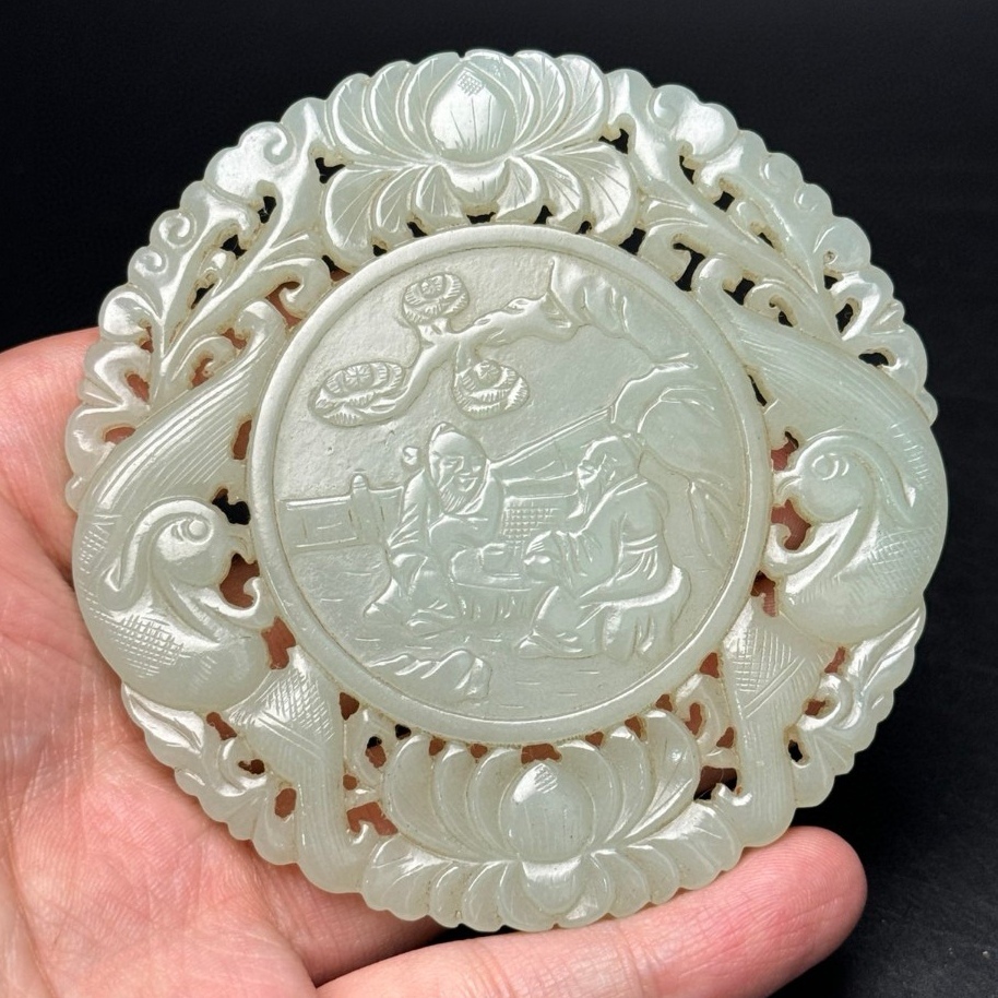 旧蔵 清 玉彫 和田玉 拉絲玉佩 雙星對奕 樂在其中 彫刻精美 玉質温潤 包漿醇厚 極細工 中国古玩 骨董品 古美味 207