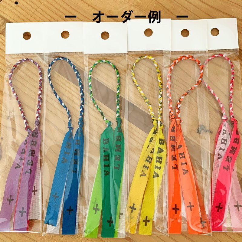ボンフィンの色を3色選んで自分だけの、またはチームのオリジナルミサンガをオーダーいただけます!