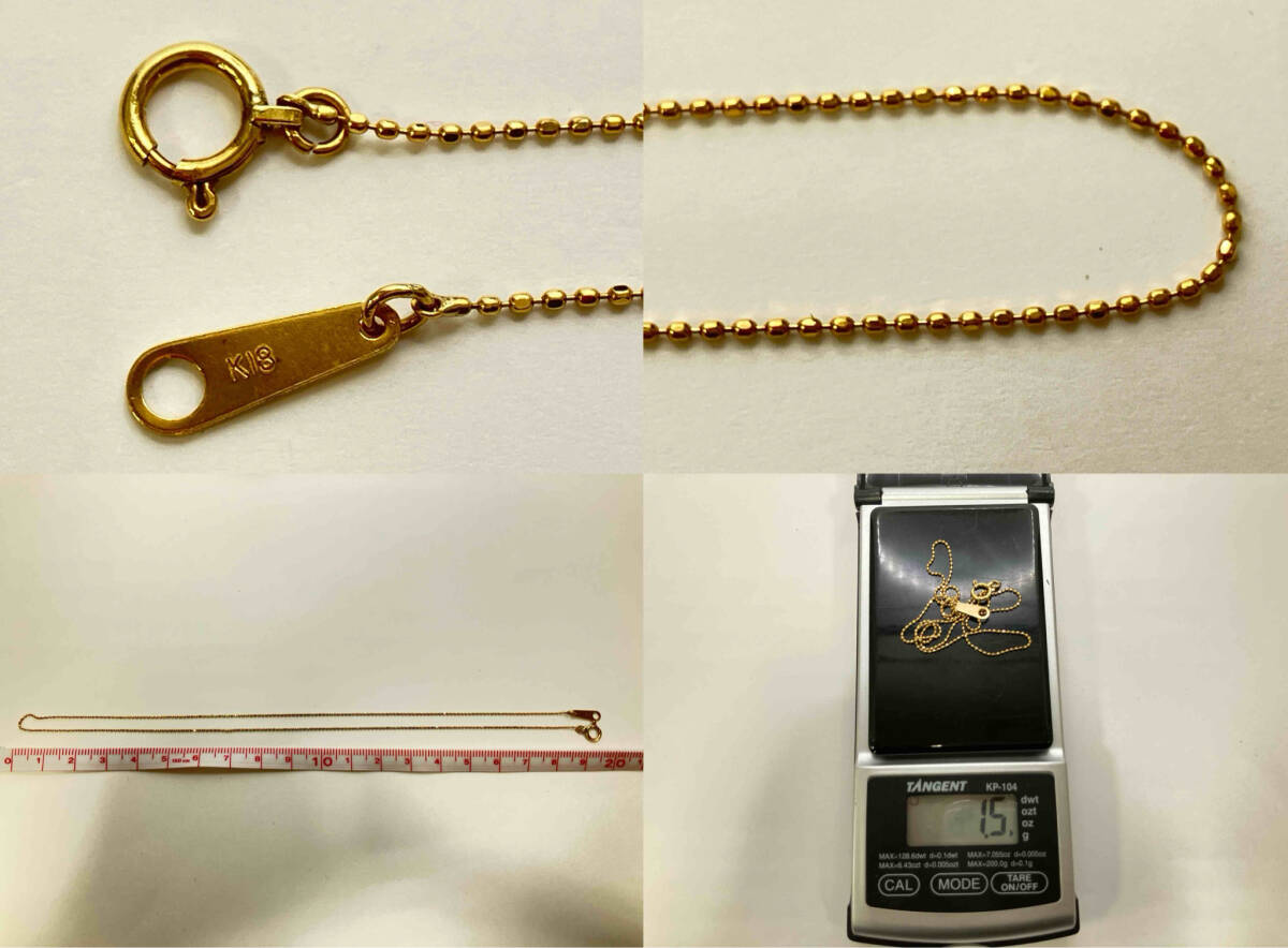 | チェーン全長:約 40cm 総重量:約 1.5g サイズ表記(~cm位)は目安です。ブランドやデザインによって多少前後する場合がございます。予めご了承の上ご注文ください。 ![]() | ||||||