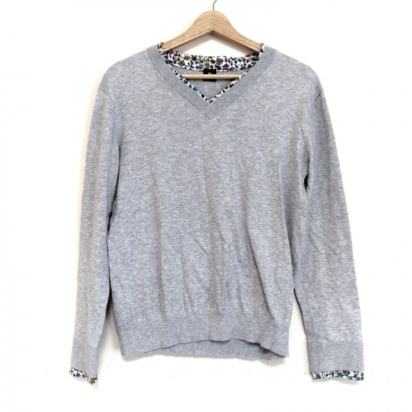 ポールスミス PaulSmith 長袖カットソー サイズM - ライトグレー×白×マルチ レディース Vネック/ニット/PS Paul Smith トップス