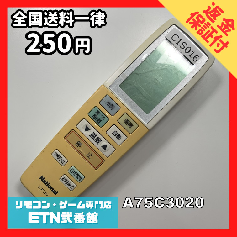 C1S016 【送料250円】エアコン リモコン / National ナショナル A75C3020 動作確認済み★即発送★ 冷房 暖房