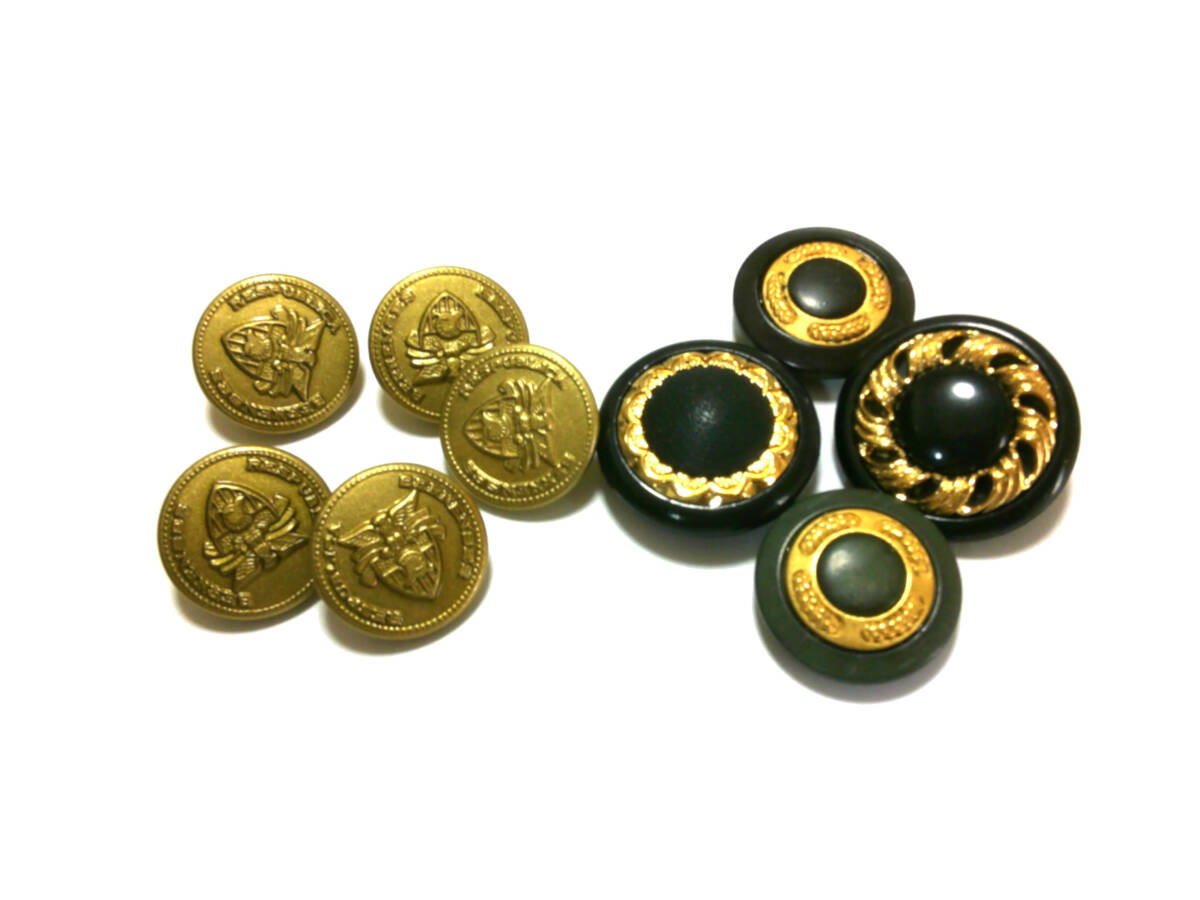 現品ボタン 約25mm~18mm ミックス ポリエステル 金属 ボタン 9個入り ge049