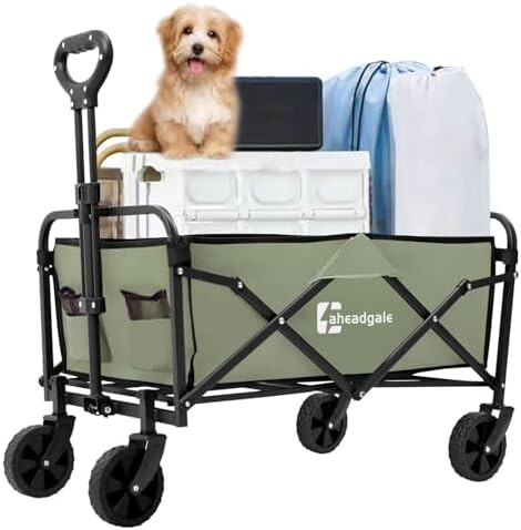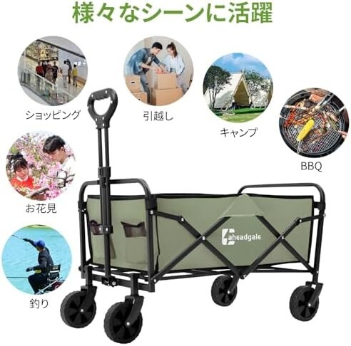 AHEAD GALE キャリーカート キャリーワゴン 耐荷重100kg 折りたたみ アウトドア ワイドタイヤ搭載 120L大容量 コンパクト BBQ 釣り キャンプ (グリーン(M))