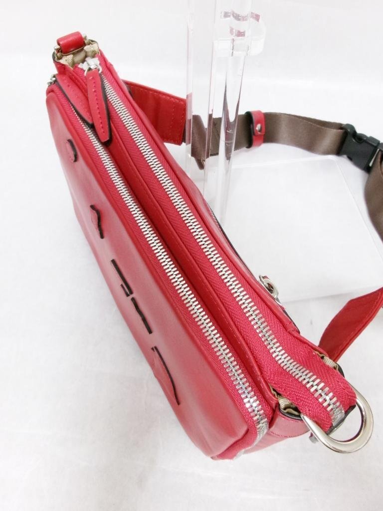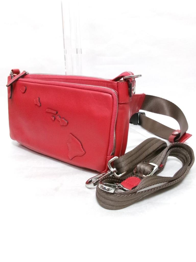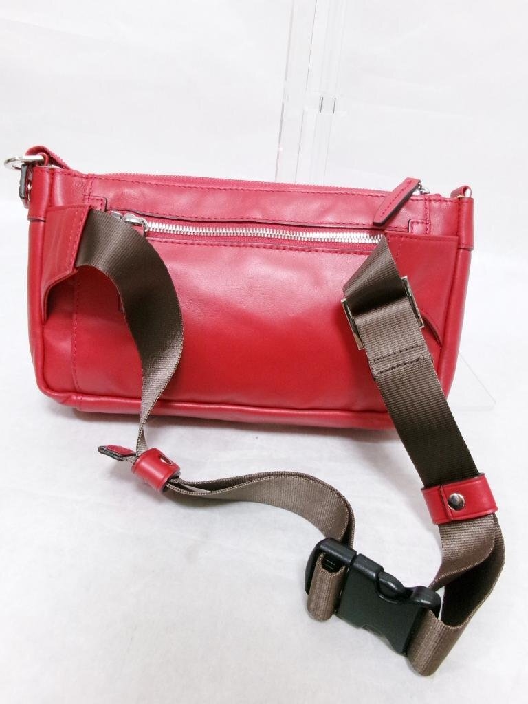 【送料込】Lanai TRANSIT ラナイ トランジット 2WAYバッグ ボディバッグ/ショルダーバッグ 赤レッド レザー ファスナー開閉 /n970421