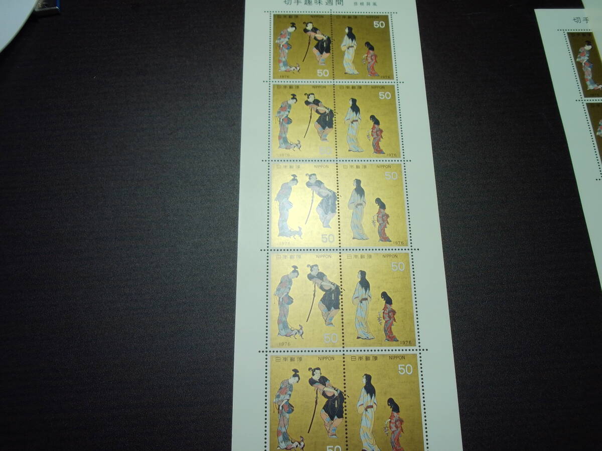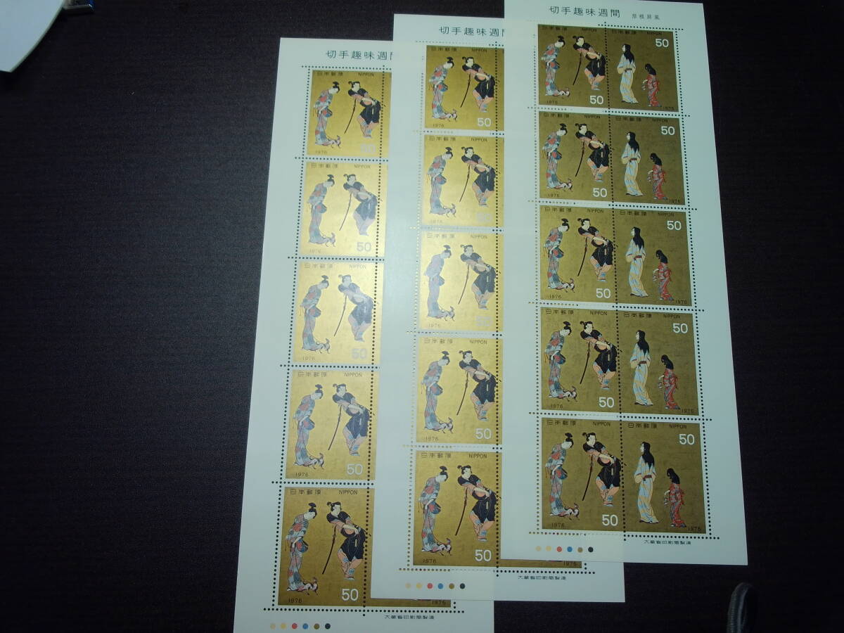 切手趣味週間  彦根びょう風  3シート1セット  極美品  額面1500円  昭和51年発行