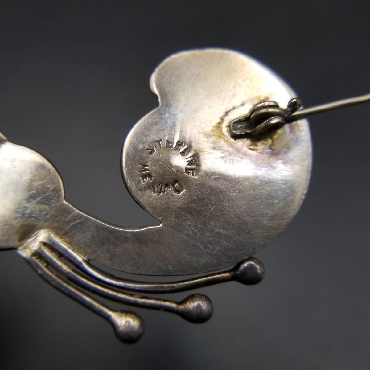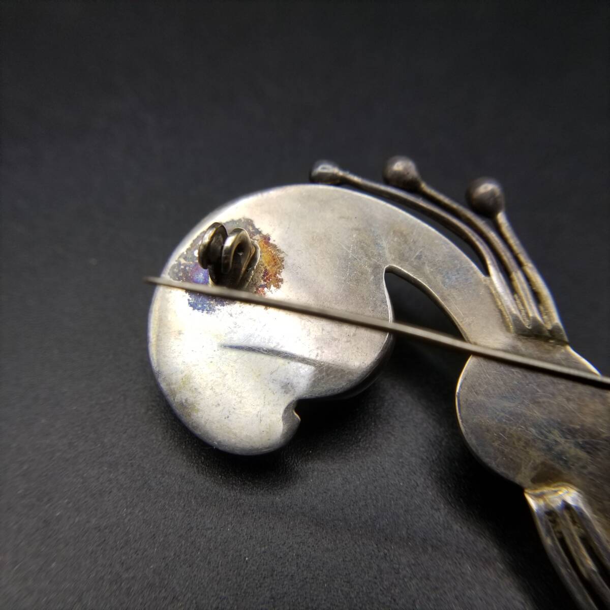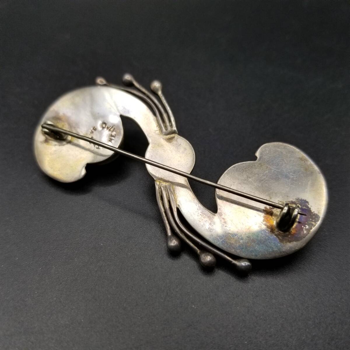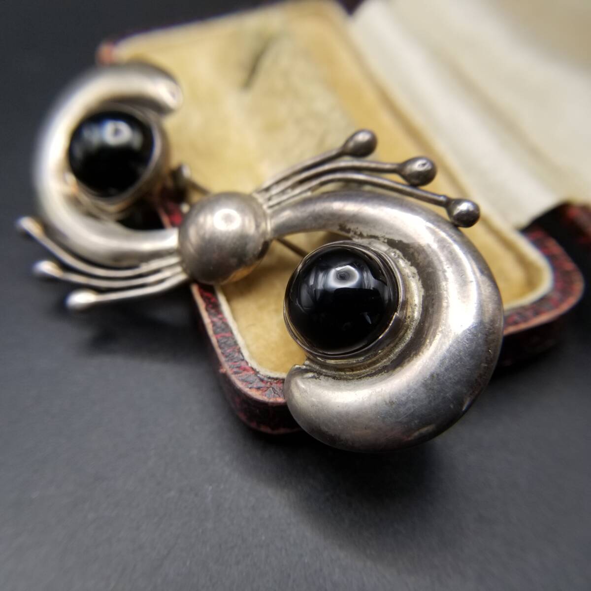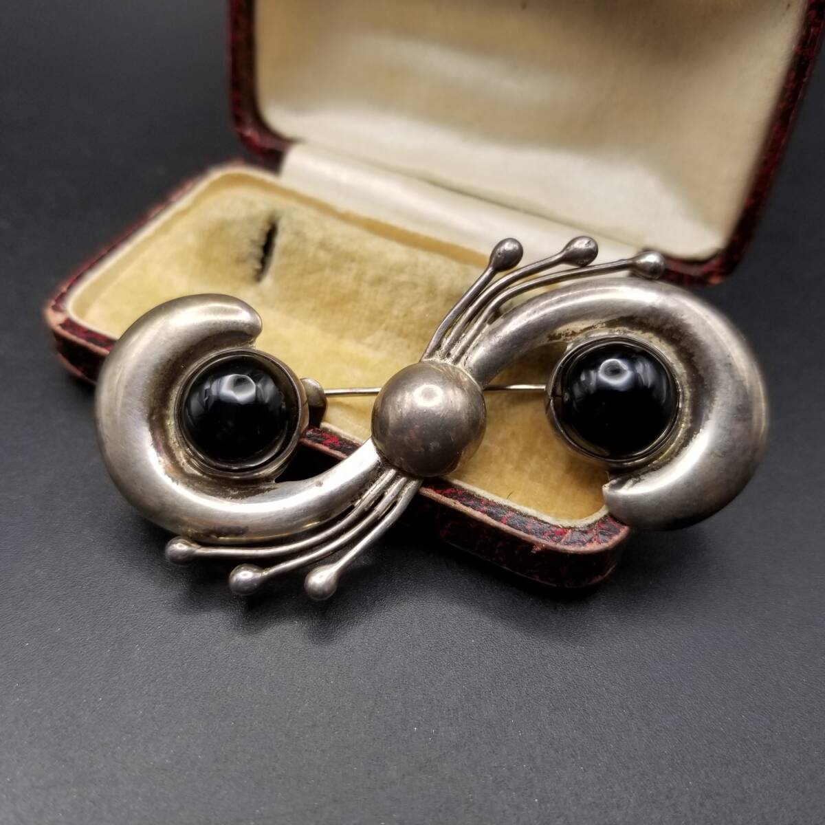 メキシコ 925 シルバー リボンデザイン オニキス カボション ヴィンテージ ブローチ 銀 モダニスト Mexico 存在感 R16-A