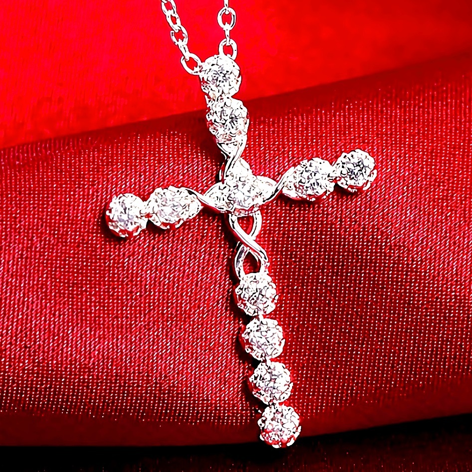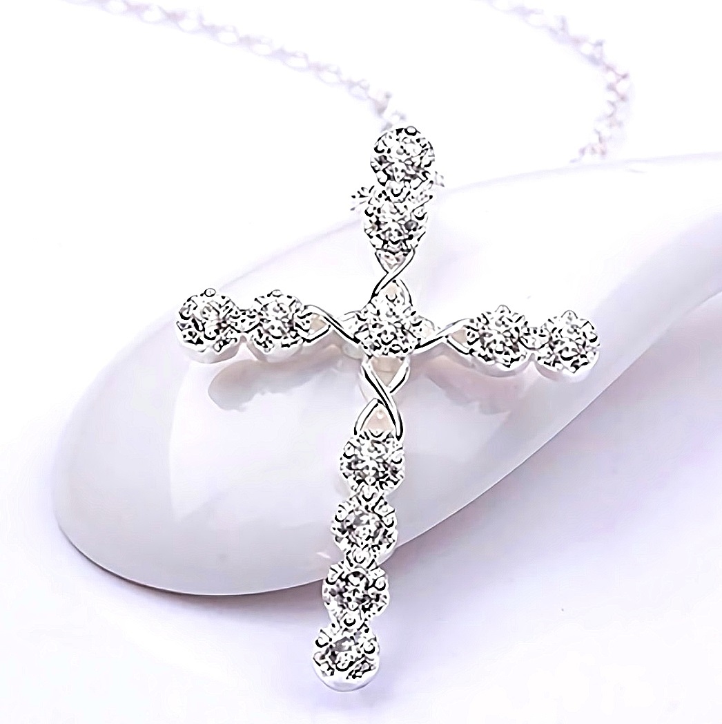 新品★送料無料★七色ダイヤモンド 十字架クロス プラチナ仕上925シルバーネックレス誕生日プレゼント旅行夏海祭盆連休ギフト国内発送