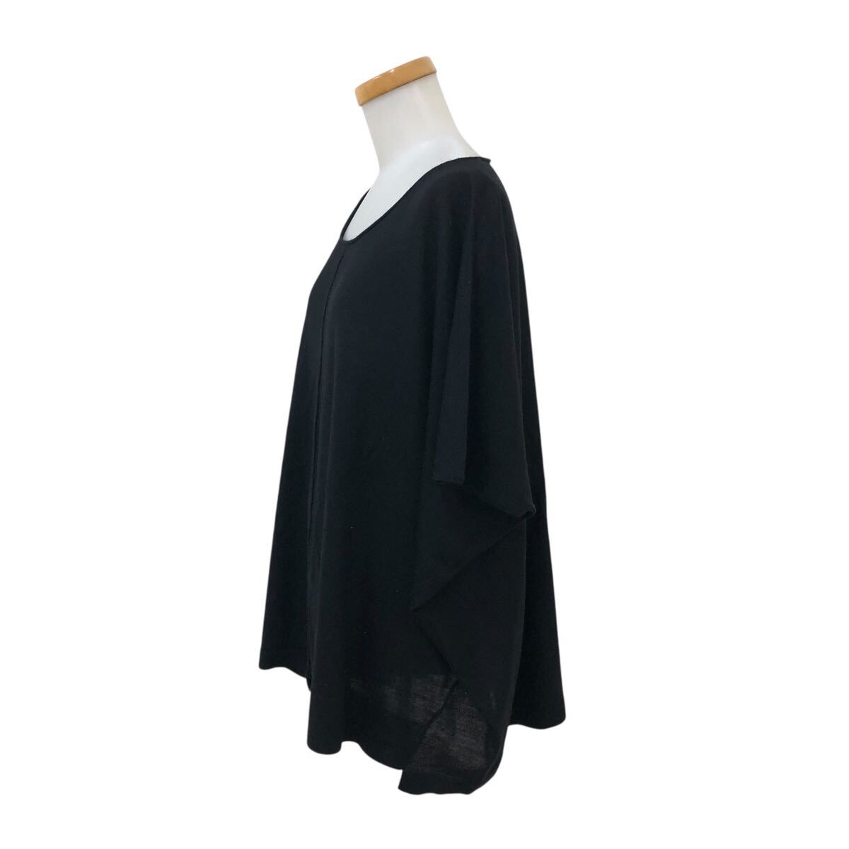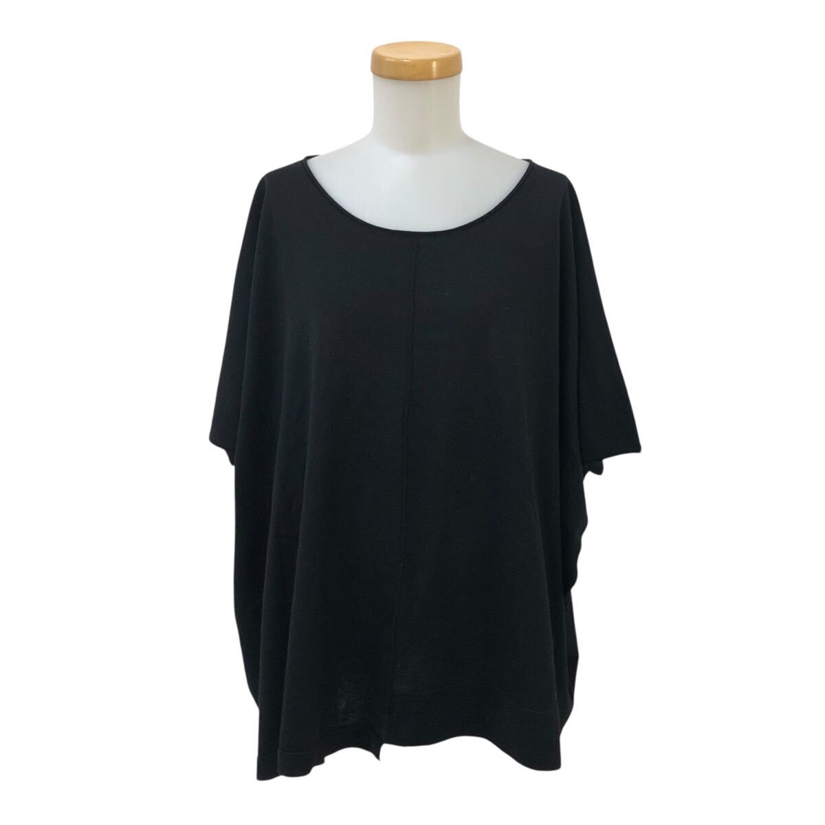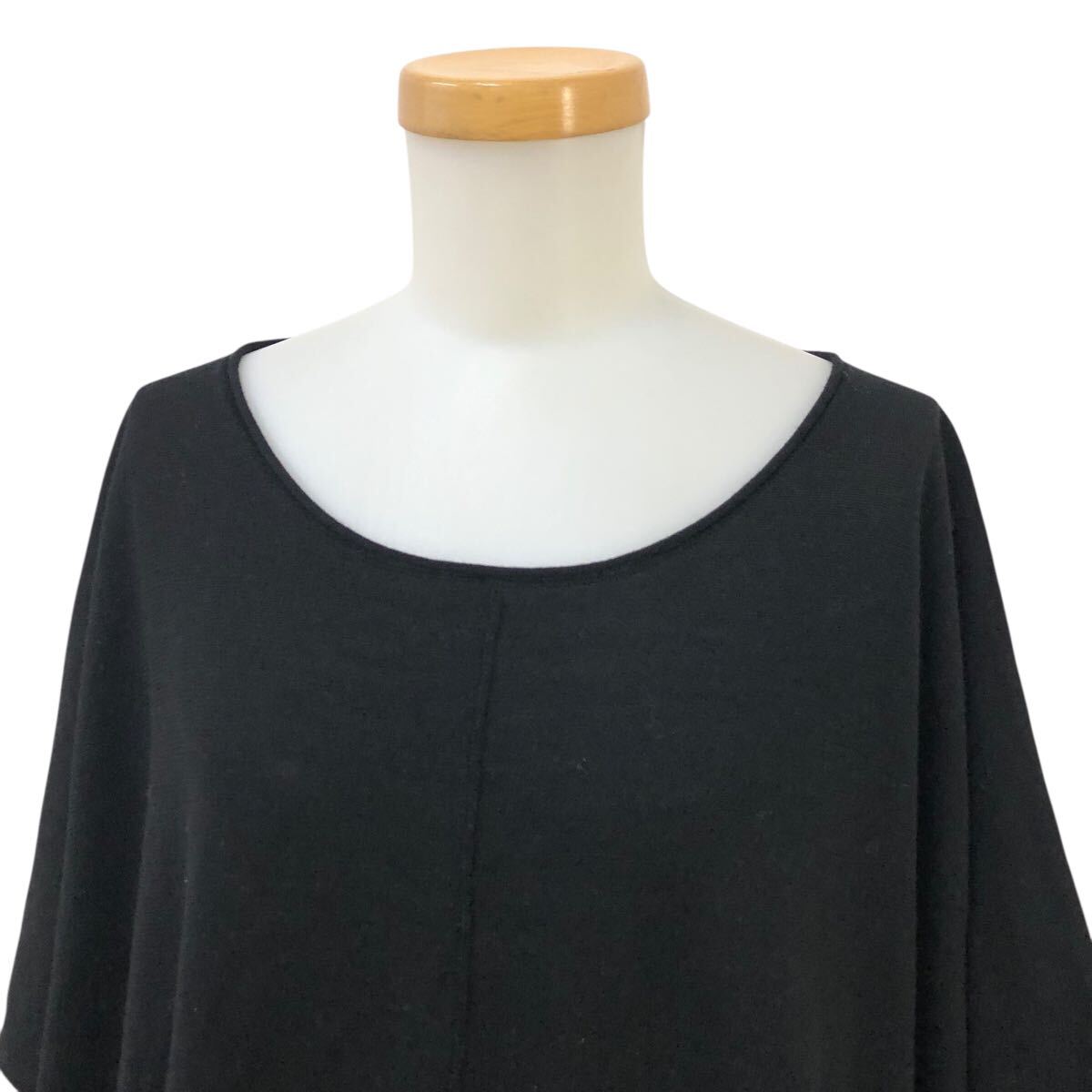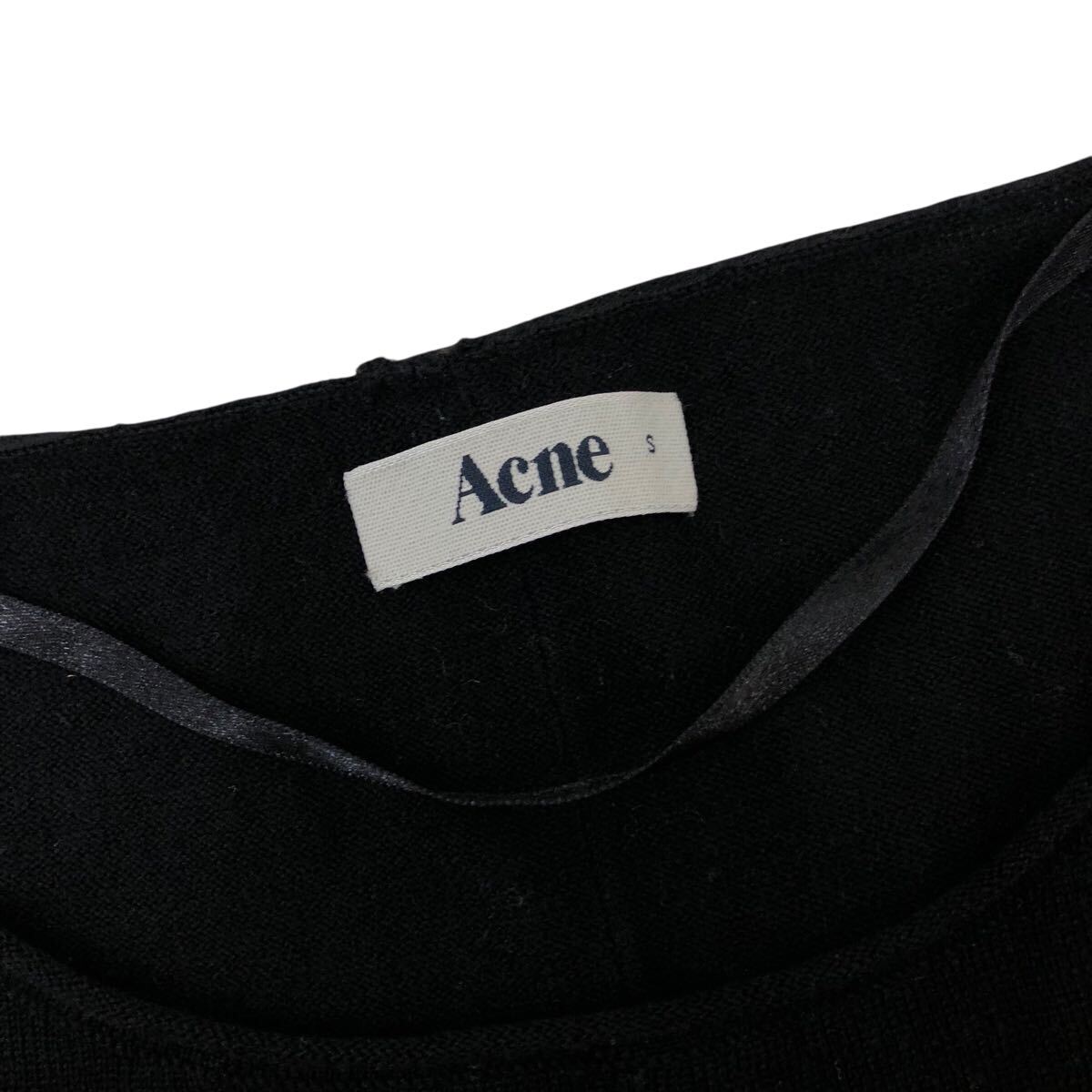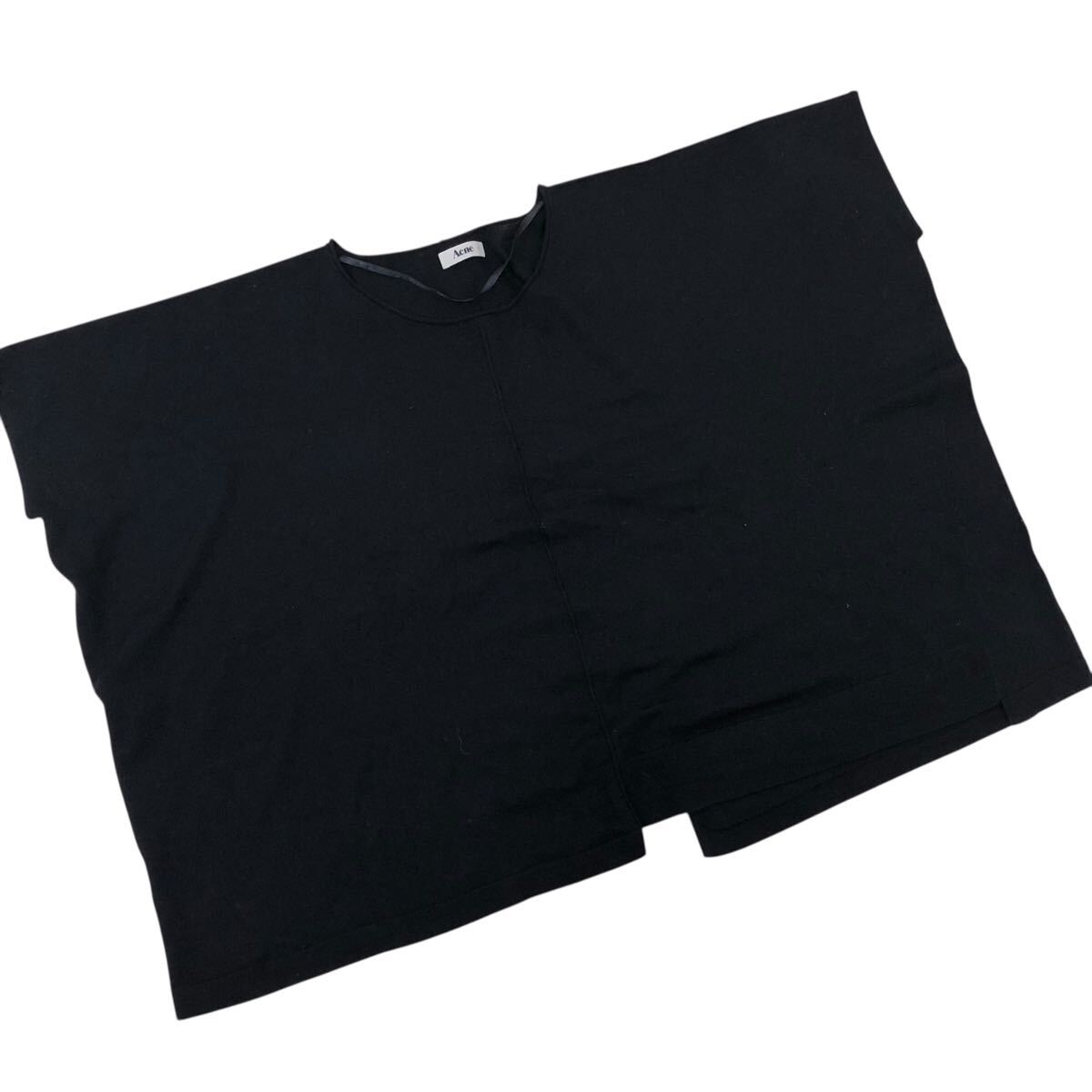 Nm312-36 Acne アクネ スクエア ワイド スリット デザイン 半袖 ニット セーター プルオーバー トップス ブラック 黒 レディース S
