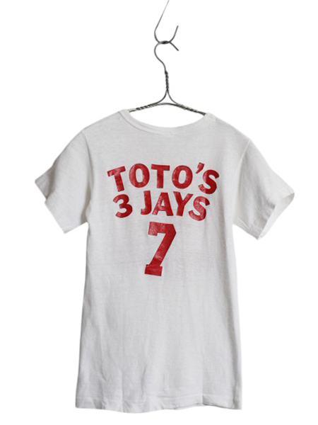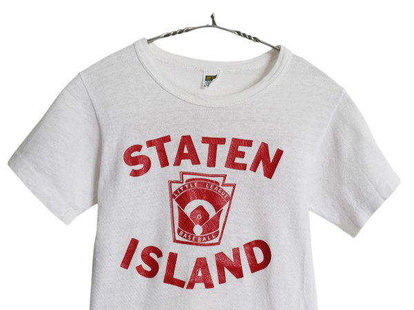 60年代初頭のヴィンテージ ラッセルの プリントTシャツです RUSSELL SOUTHERN COMPANY 製造年数の非常に短い 希少な 初期 金タグ 素材は、100% COTTON ( コットン ) 柔らかい着心地抜群の素材が使用されています。 MADE IN USA (アメリカ製) 袖、裾、共にシングルステッチのヴィンテージボディ 強度も高くスッキリとした印象を持たせるバインダーネック 合わせやすい爽やかなホワイトボディに フロント、ニューヨーク市のスタテン島の リトルリーグ(少年野球)のラバープリント入り。 バックも同様のプリント入り。 細身のスタイリッシュな年代独特のシルエット シンプルながら存在感のあるグッドデザイン 玉数の圧倒的に少ないベビー ( キッズ )サイズ 60年代初頭のヴィンテージ マニアの方のコレクションにもおすすめ ディスプレイとしても映える これだけで様になる商品です。 |