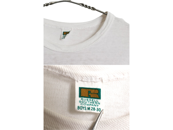 | 商品名 | 60s USA製 ラッセル プリント 半袖 Tシャツ キッズ ボーイズ M 110cm 程/ 古着 ヴィンテージ 初期 金タグ シンプル シングルステッチ 白 |