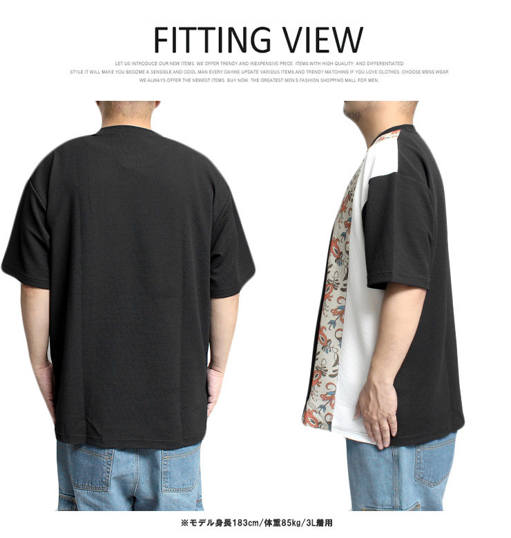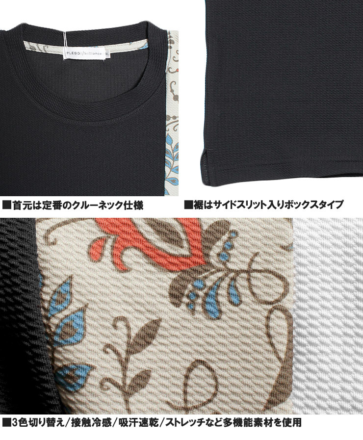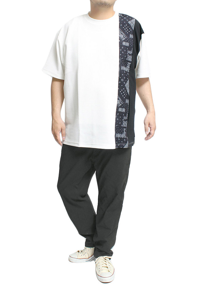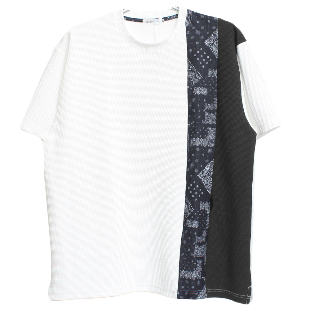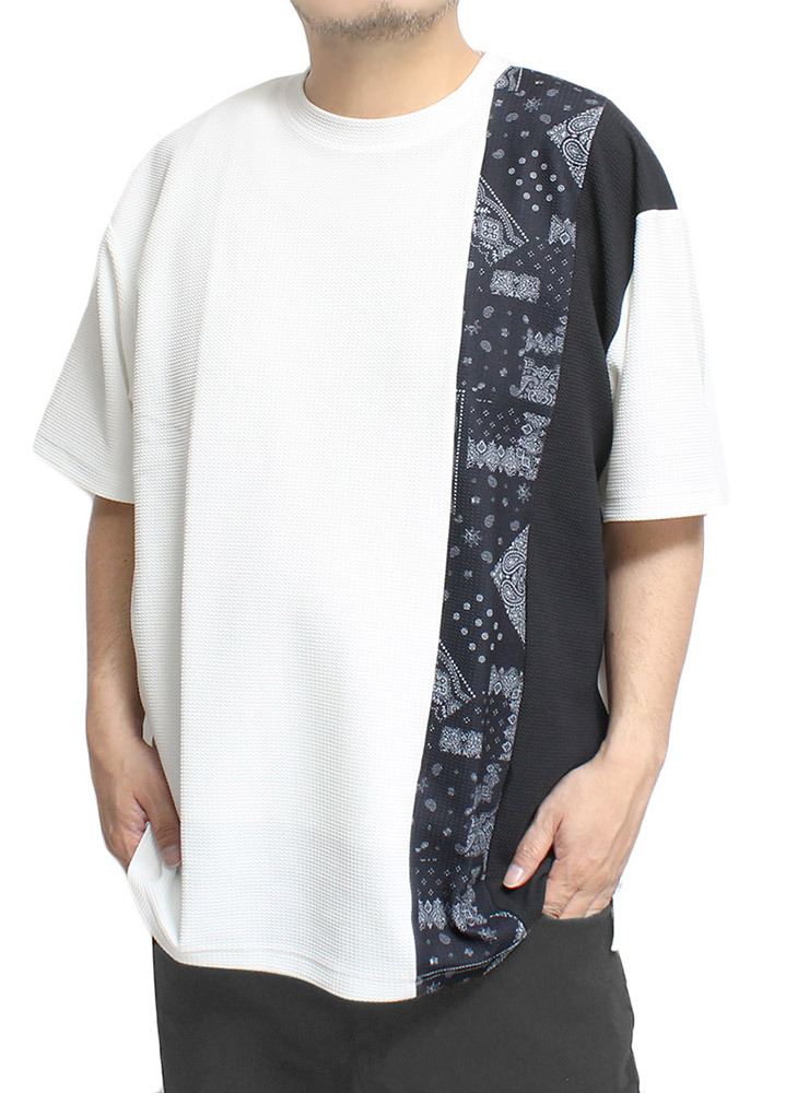 | 商品名 | 【新品】 3L ホワイト 半袖 Tシャツ メンズ 大きいサイズ 接触冷感 薄手 吸水速乾 ワッフル ペイズリー柄 切替 プリント クルーネック カットソー |