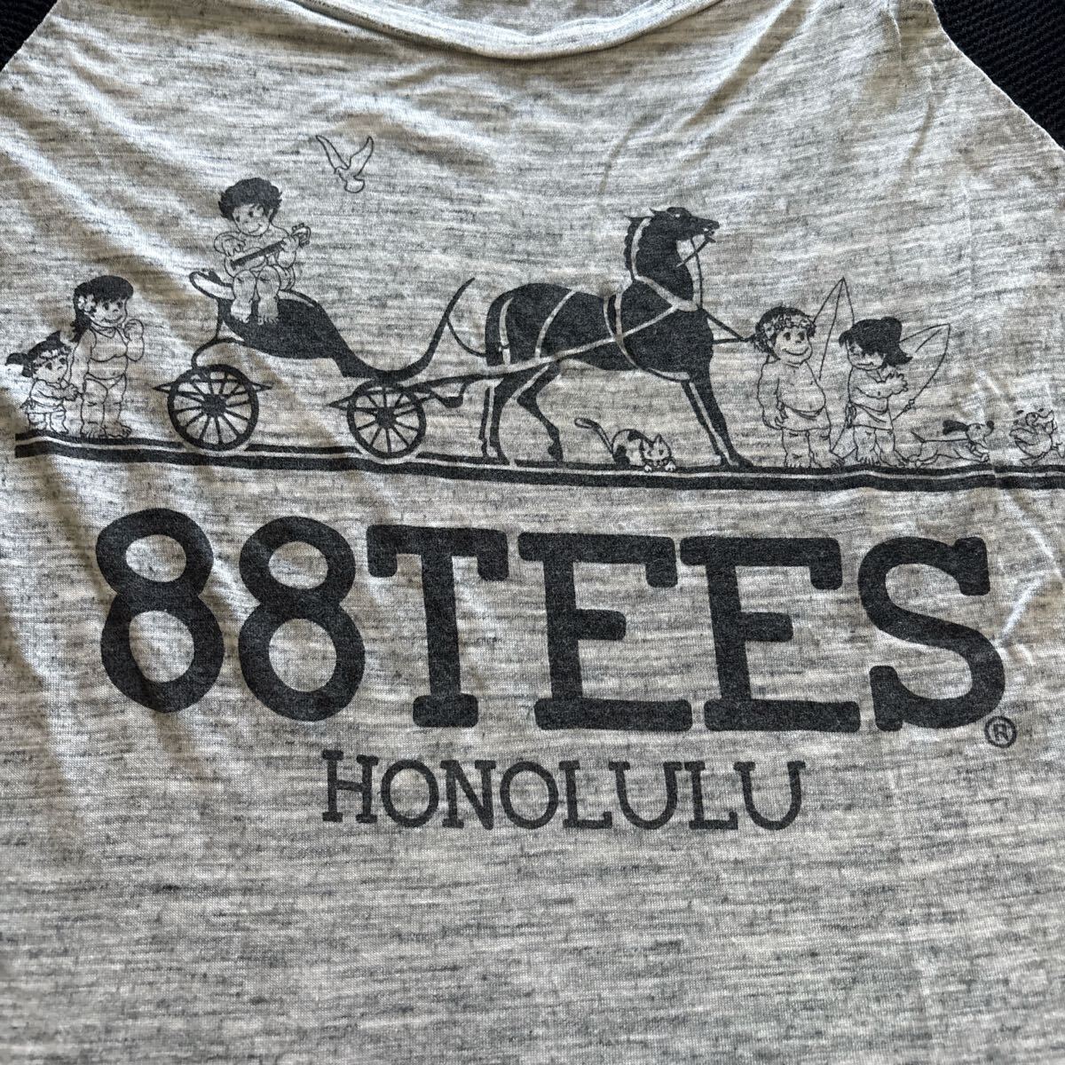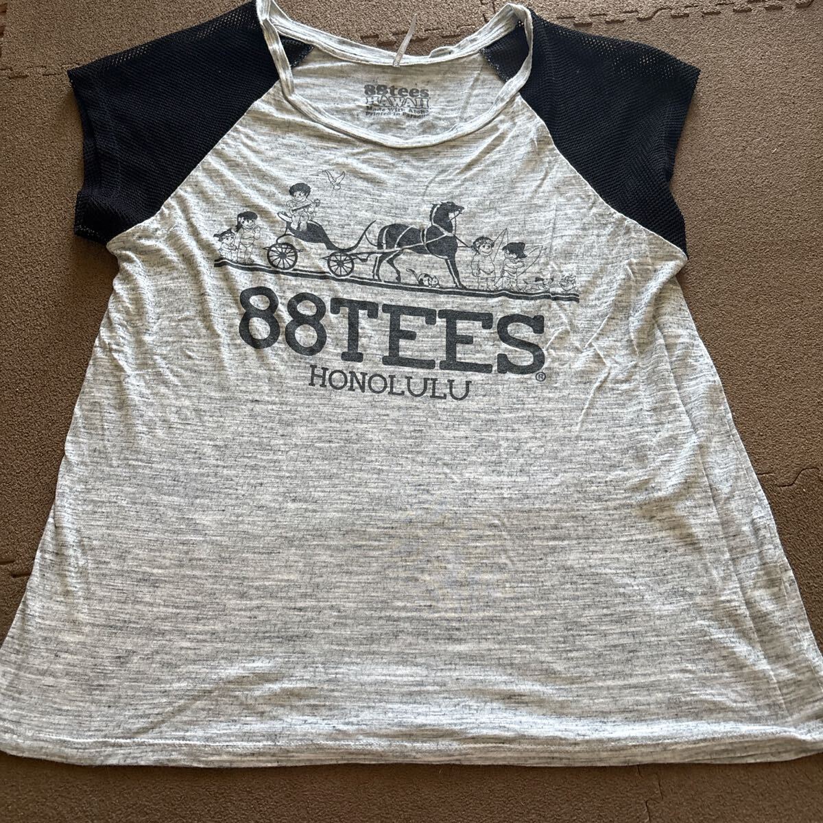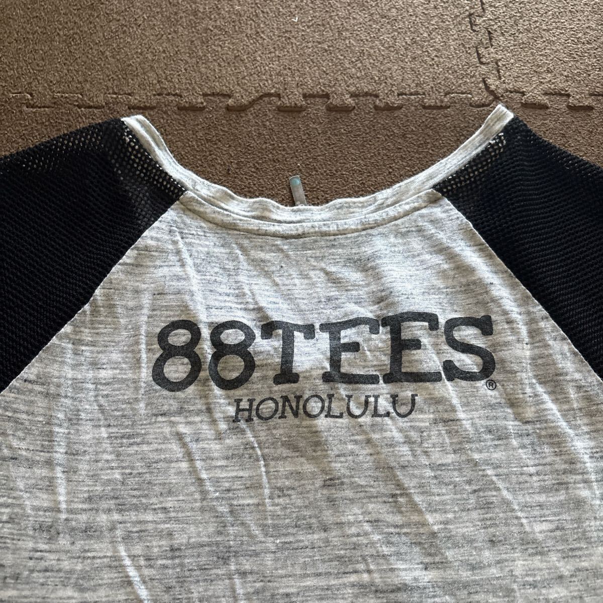 ホノルルのグラフィックが特徴の88TEESの半袖Tシャツ、メッシュ素材の袖で通気性抜群。