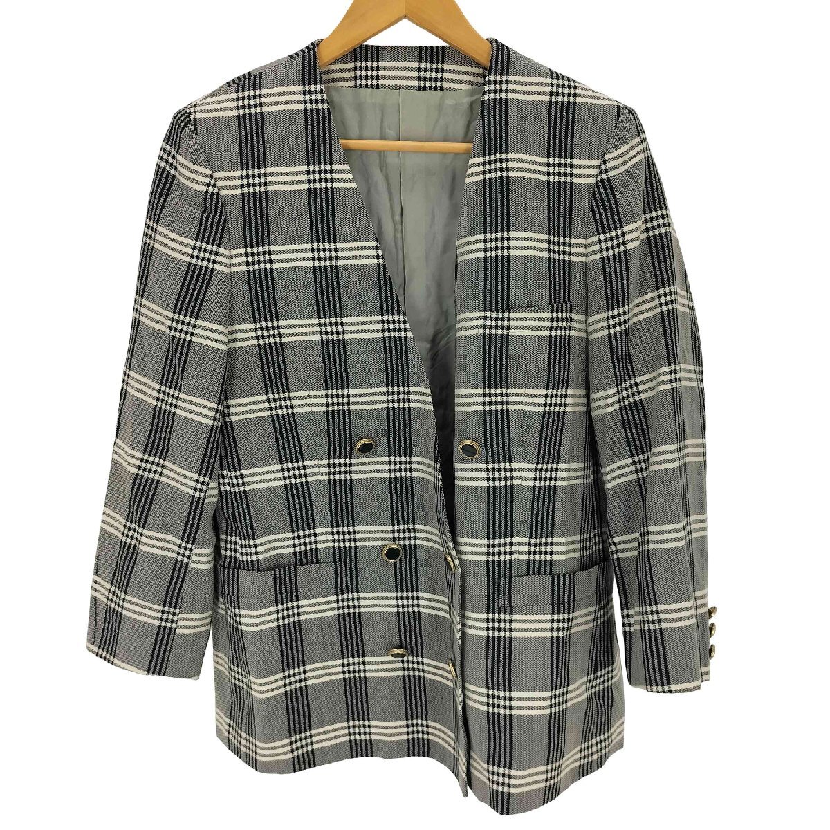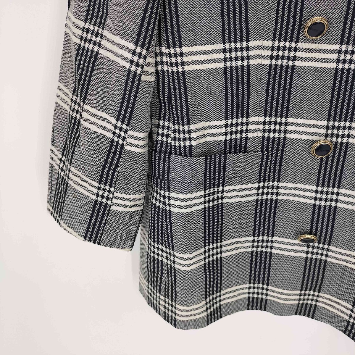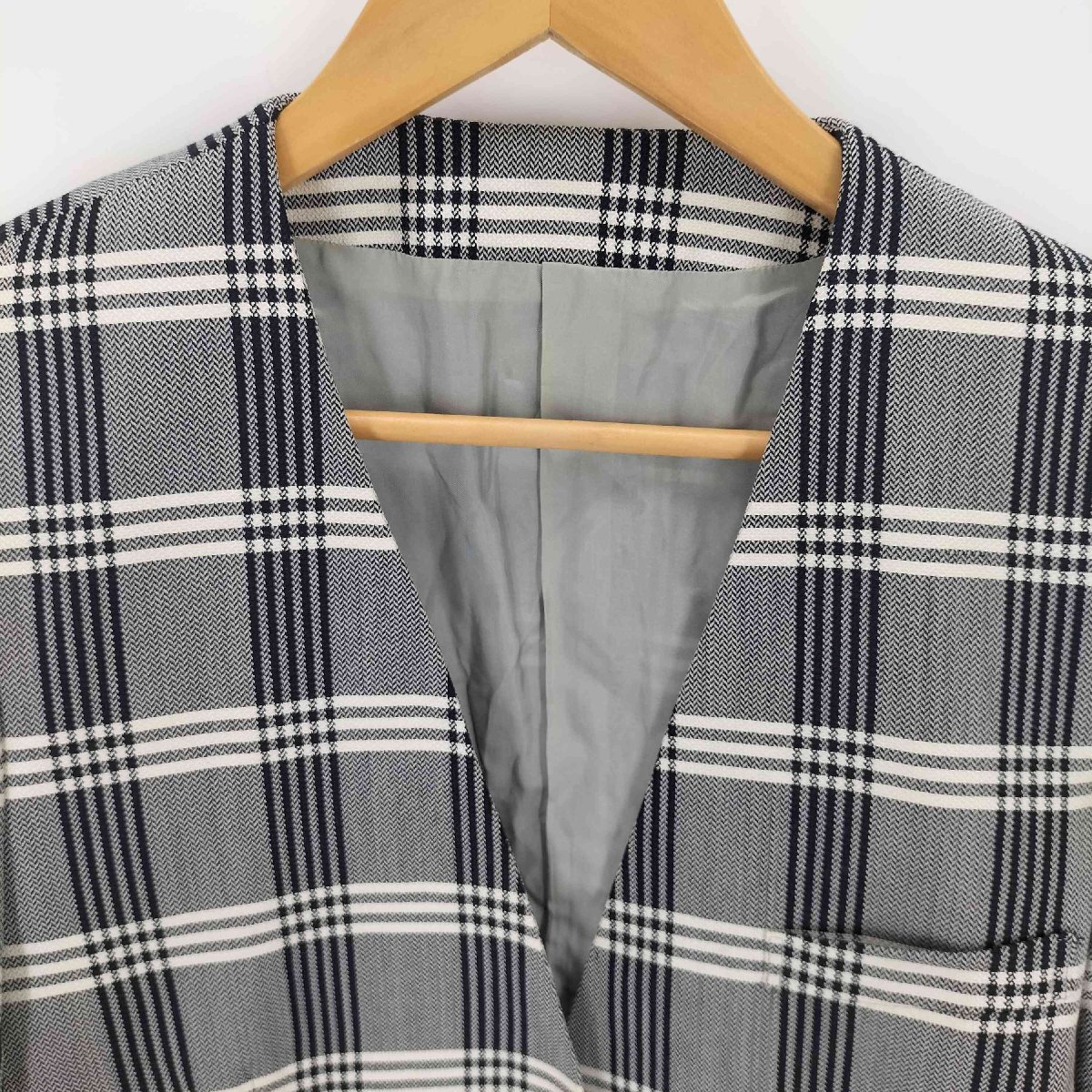 アイテム | 白タグ シルク混 ダブルブレストチェックノーカラージャケット |