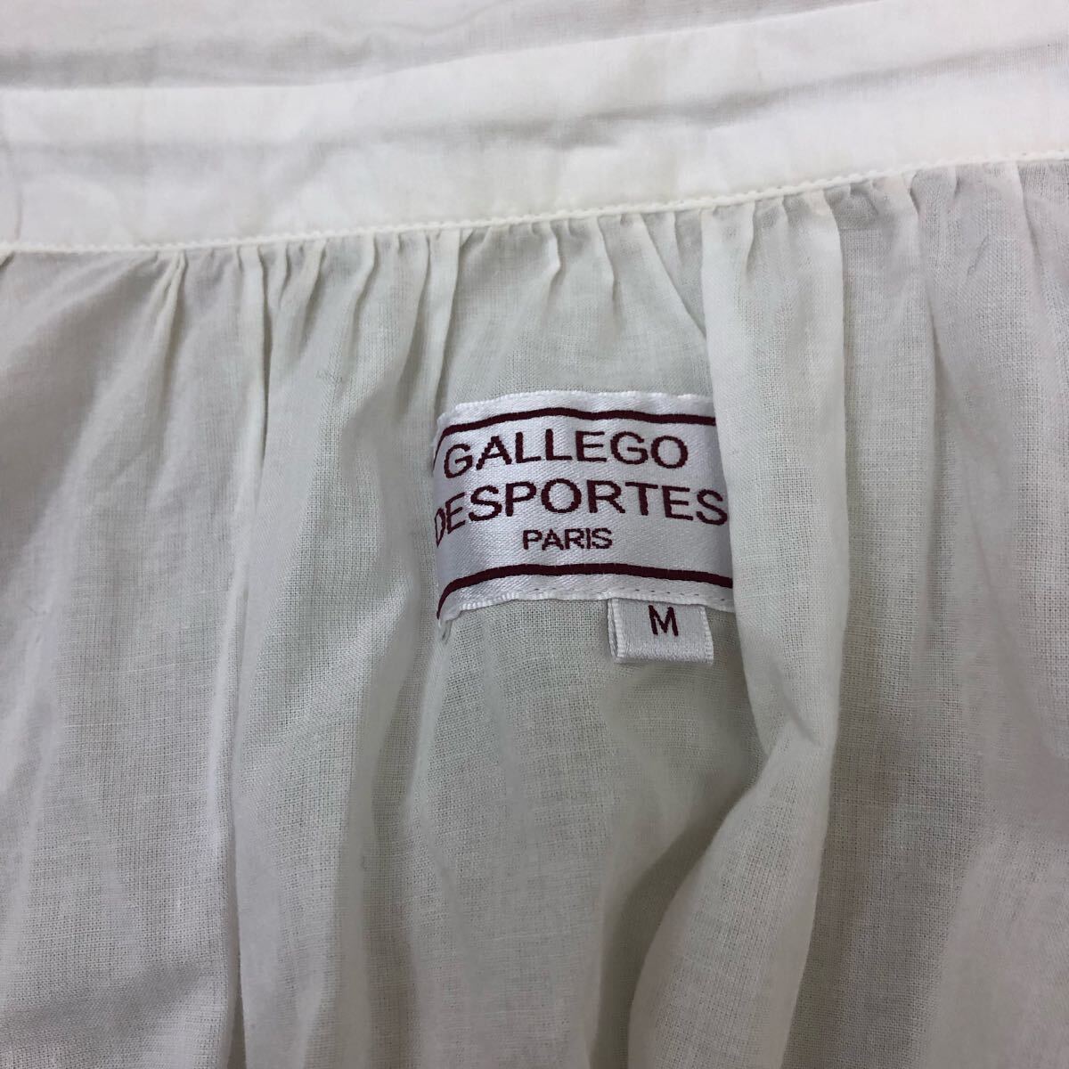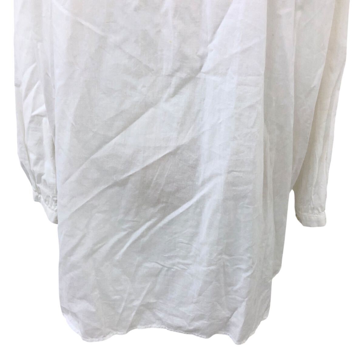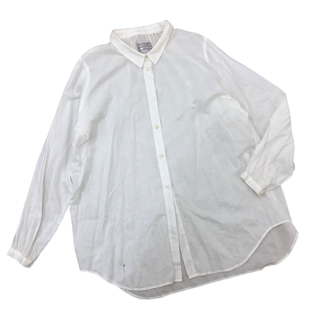 Nm313-48 フランス製 GALLEGO DESPORTES ギャレゴデスポート ギャザー 長袖 コットン シャツ ブラウス トップス ホワイト 白 レディース M