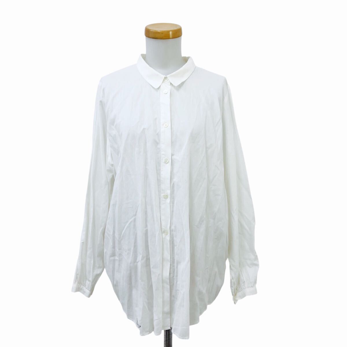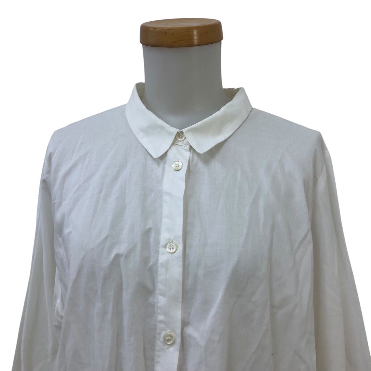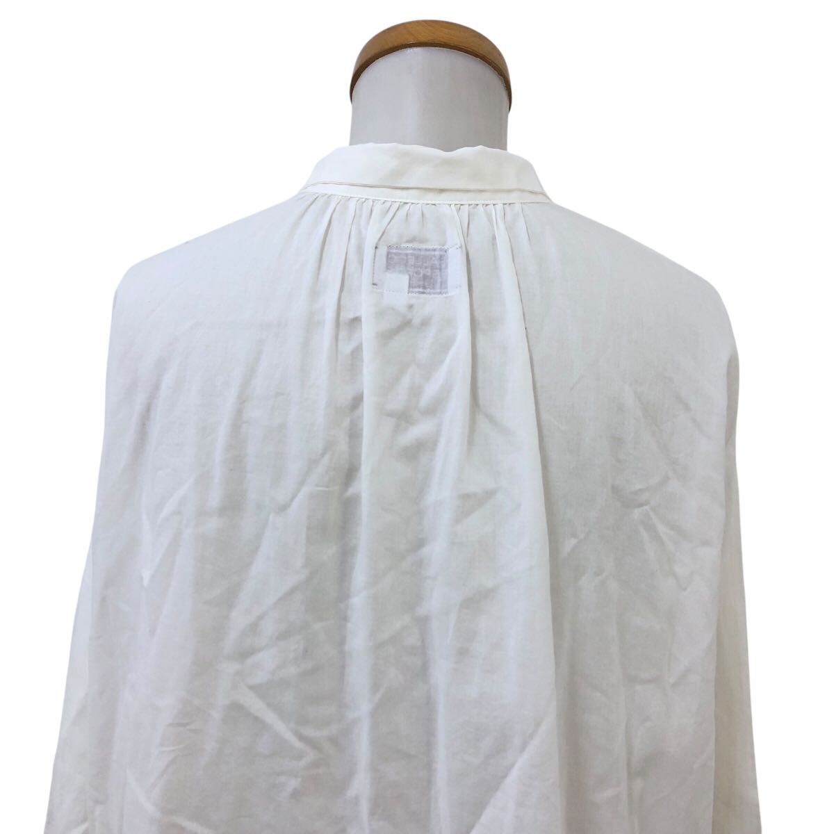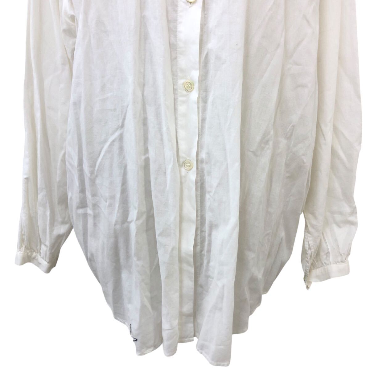Nm313-48 フランス製 GALLEGO DESPORTES ギャレゴデスポート ギャザー 長袖 コットン シャツ ブラウス トップス ホワイト 白 レディース M