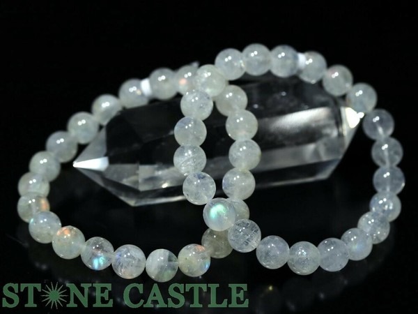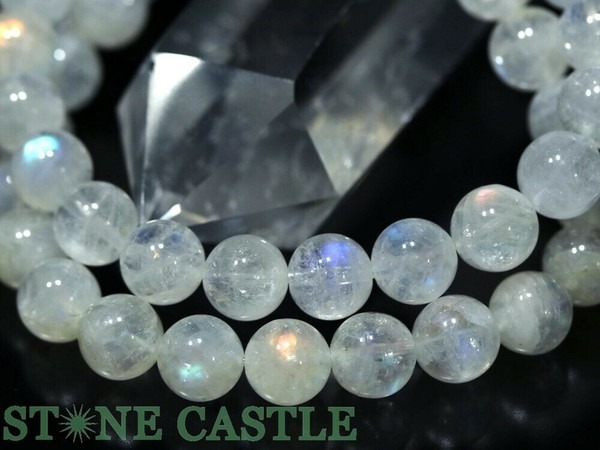 【希少石】天然レインボームーンストーン2A 約8.5〜9mm ブレスレット