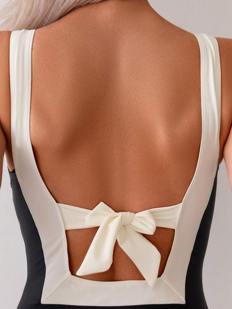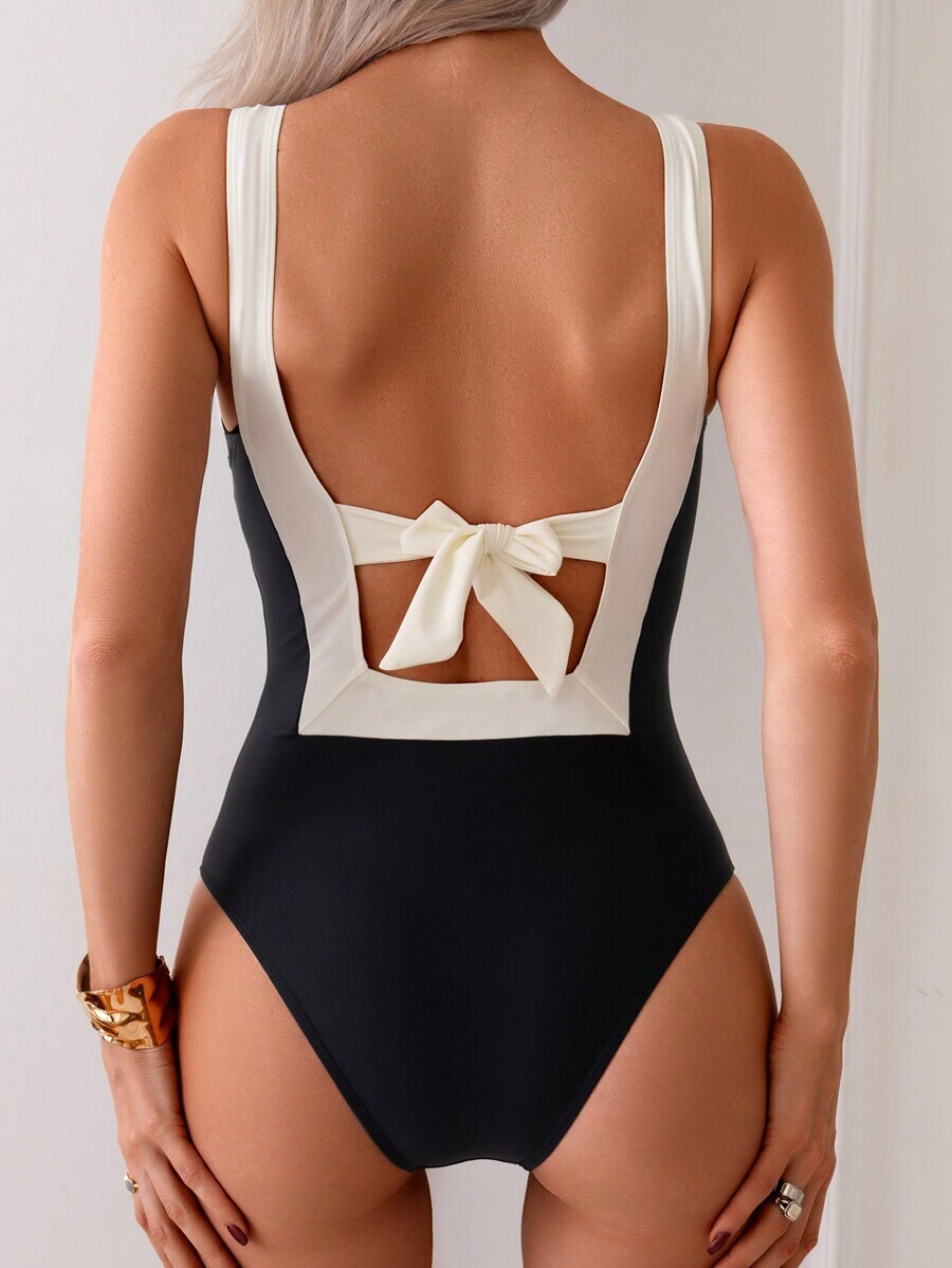 レディース 水着 ワンピース 女性用ワンピース 優雅なカジュアルバケーション オープンバック ソフトカップ ワイヤレス カラーブロ