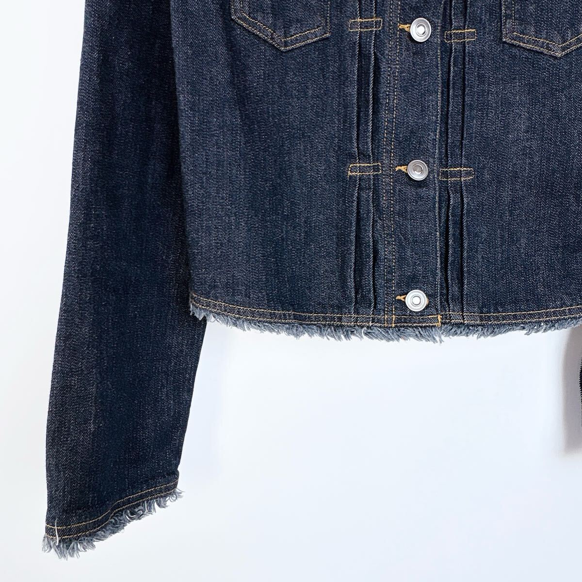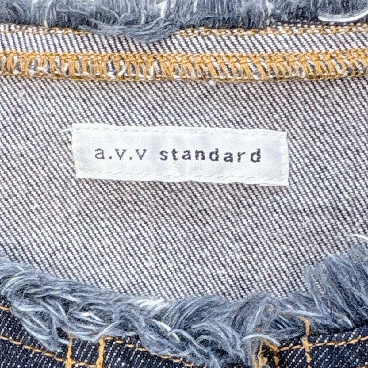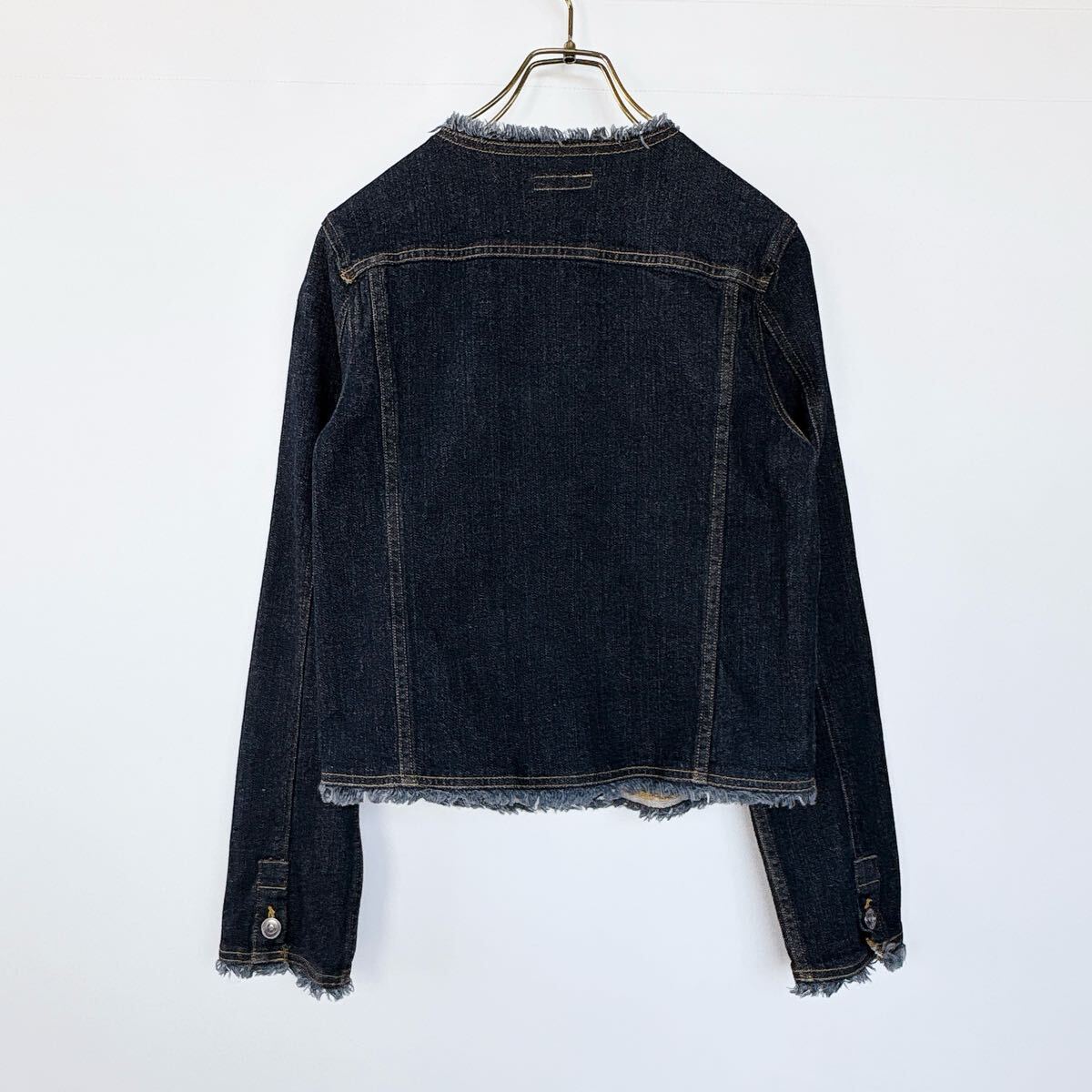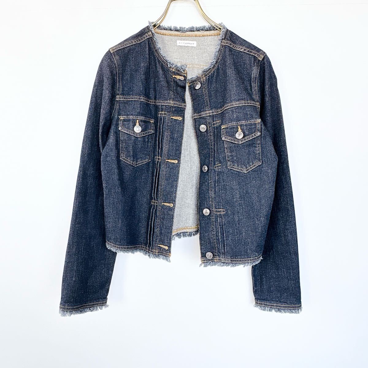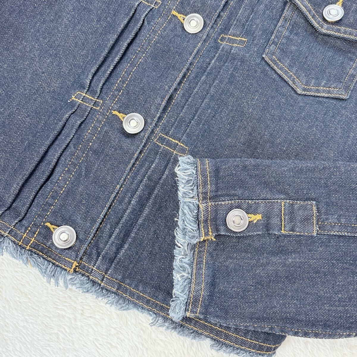 | ご覧いただきありがとうございます。 【ルネートル】では、古着を多数出品中です。ぜひご覧ください 商品名: デニムジャケット カラー: ブルー サイズ: M 特徴: 「a.v.v standard(アーヴェヴェ スタンダード)」のレディースデニムジャケットです。 深みのあるインディゴブルー(濃紺)で、カジュアルながらも上品な印象。 襟元、裾、袖口にはフリンジ加工が施されており、デザインのアクセントになっています。 ノーカラー(襟なし)のデザインで、すっきりとした首元を演出。 フロントはボタン留めで、両胸にはフラップ付きポケット、その下には縦に切り替えとボタンがあしらわれたデザインポケットがあります。Tシャツやブラウスの上に羽織るだけで、こなれ感のあるカジュアルスタイルが完成します。 ワンピースやスカートとの相性も良く、幅広いコーディネートに活躍する万能アイテムです。 状態: 中古品 素材: コットン ポリウレタン | |||