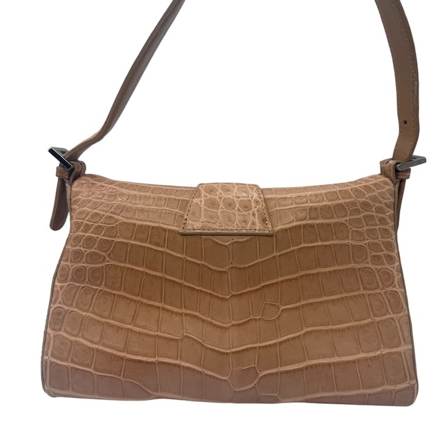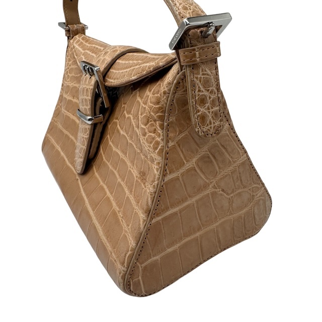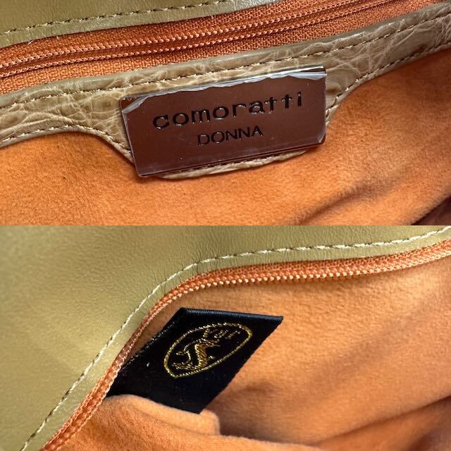 コモラッティ comoratti JRA認定 マットクロコダイル ワニ革 ワンショルダーバッグ ミニハンドバッグ エキゾチックレザー キーリング付属 ベージュ レディース