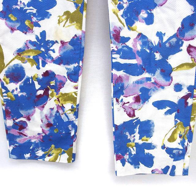 ユナイテッドアローズ UNITED ARROWS ストレート パンツ フラワープリント コットン 綿 ジップフライ 36 青 ブルー /NT25 レディース