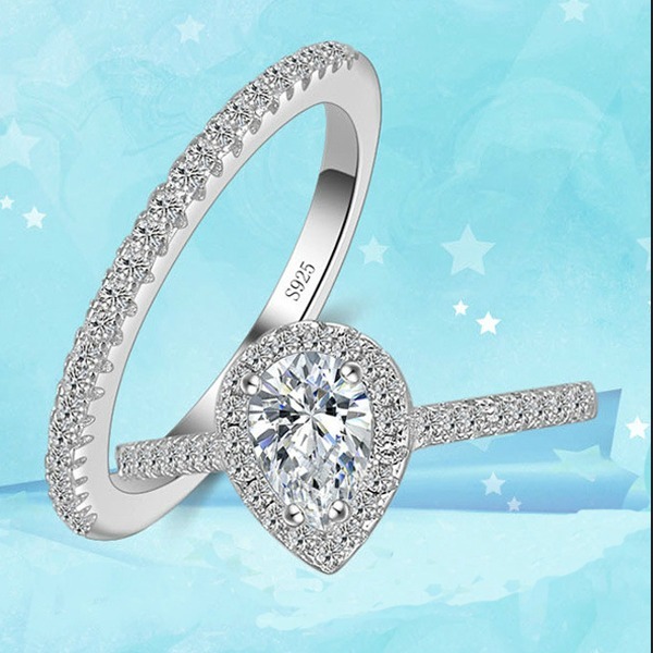 女性のための925スターリングシルバー トルマリン婚約指輪、ティアドロップジルコン、ウェディングジュエリー