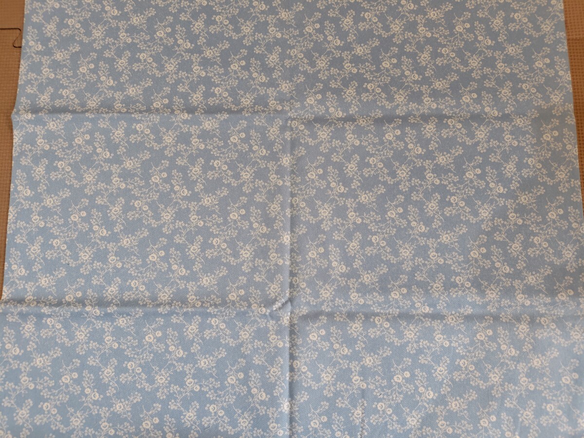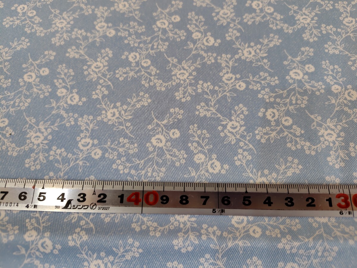 「 ☆ハギレ 優しい水色に白抜きの花 インテリア・小物作りに 布幅約110cm×48cm 」です。