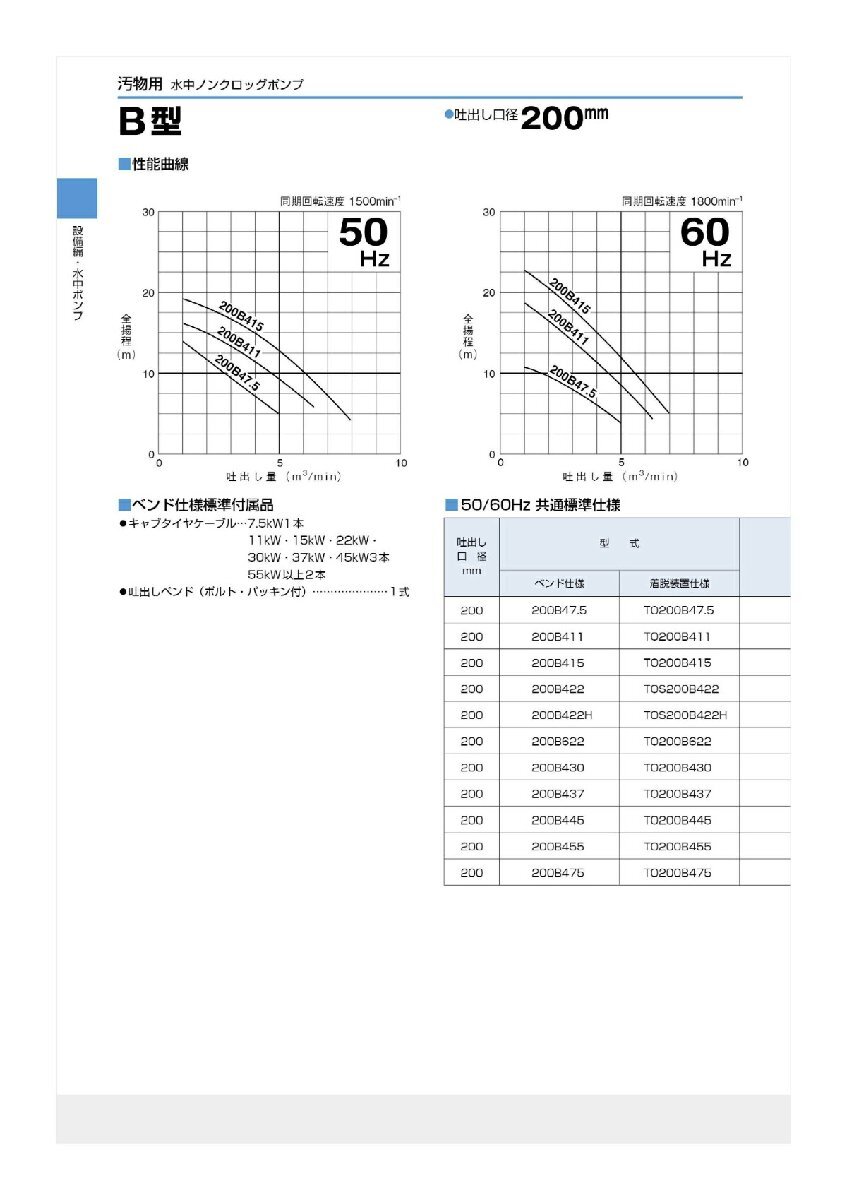 〈ツルミ〉200B47.5 60Hz 西日本用 汚物用 水中ノンクロッグポンプ B型 4極モーター 非自動形 口径200mm 三相200V 出力7.5kW 代引不可