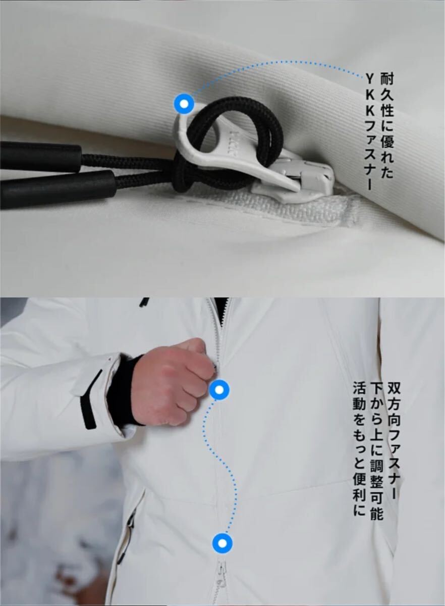 -196℃の液体窒素でも凍らない進化した複合断熱素材「エアロゲル」を採用冬用ジャケットなのに超軽量化を実現!軽くて薄いのに圧倒的な超防寒を実現安定の防寒・防水仕様。付着した汚れはすぐ落ちて、摩擦にも強く、しかも燃えにくいジャケット