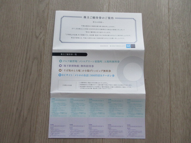 東京地下鉄 株主優待券 2026年6月30日迄
