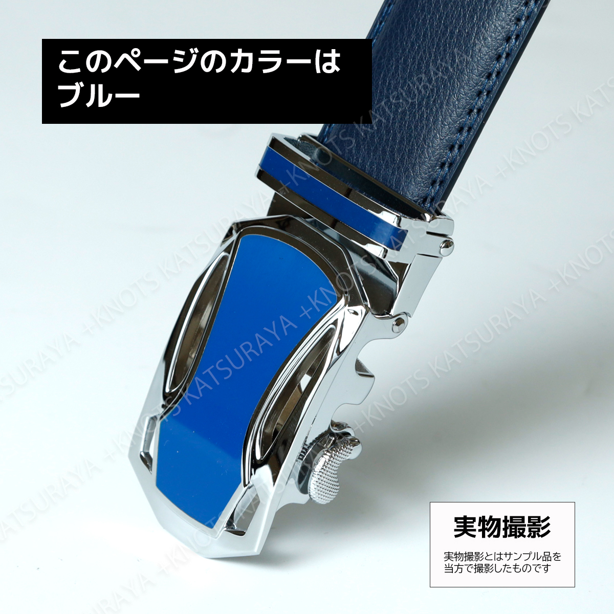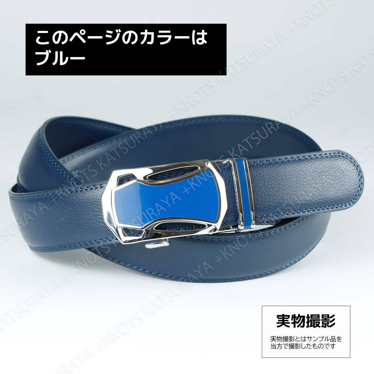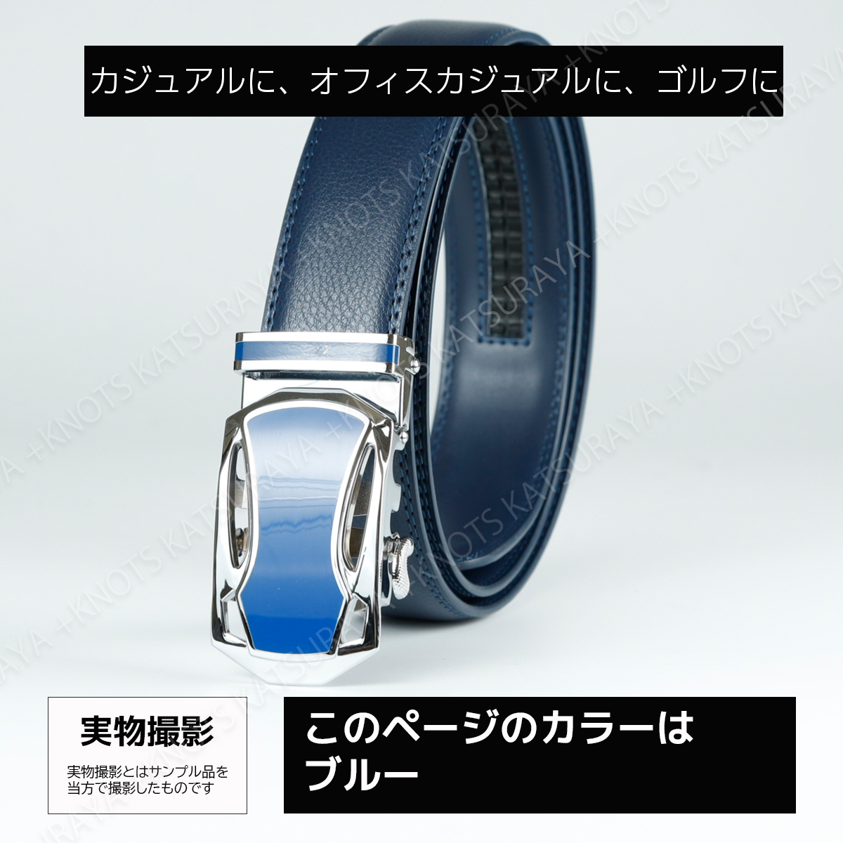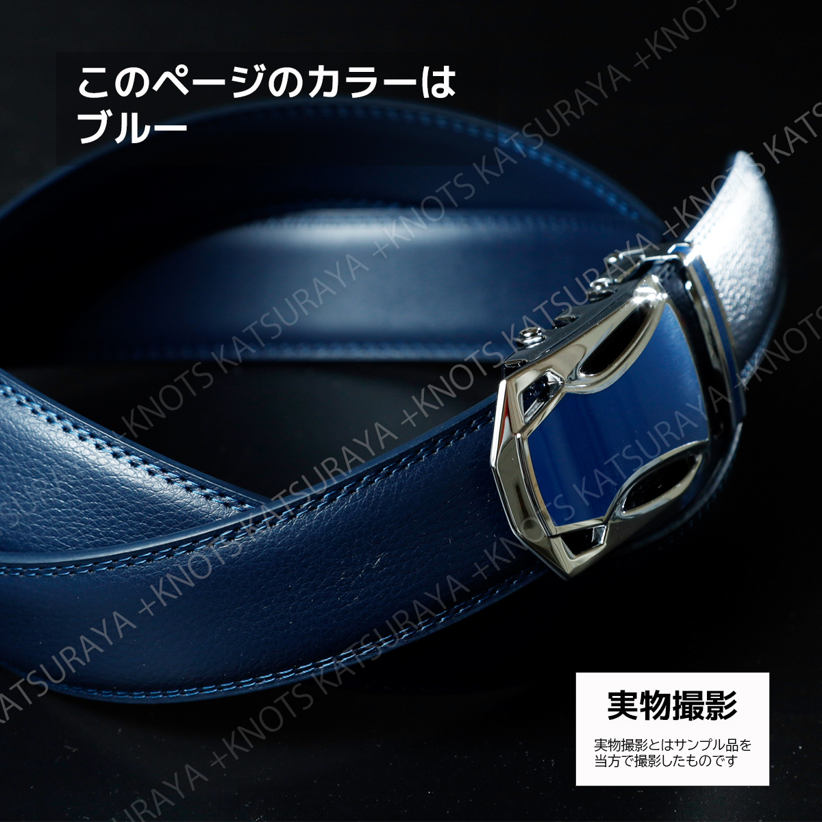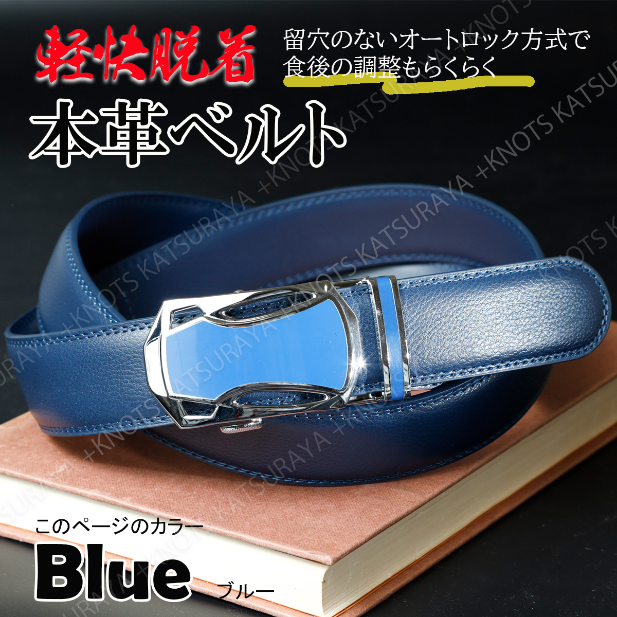 本革 メンズ ベルト★ブルー青★ゴルフ レザー 穴無し 自動 オートロックベルト カジュアル ビジネス スーツ デニムチノパン調整調節a112