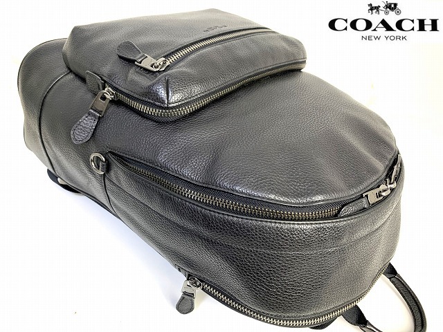 美品★送料無料★ コーチ メンズ COACH ウエスト ペブルド レザー リュックサック バックパック デイパック ブラック