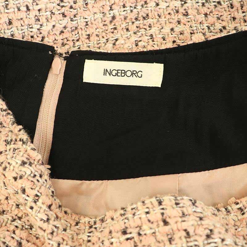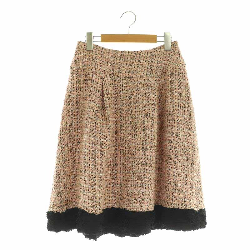 インゲボルグ INGEBORG ツイードスカート ロング フレア タック フリル 3 ピンク /MY ■OS レディース