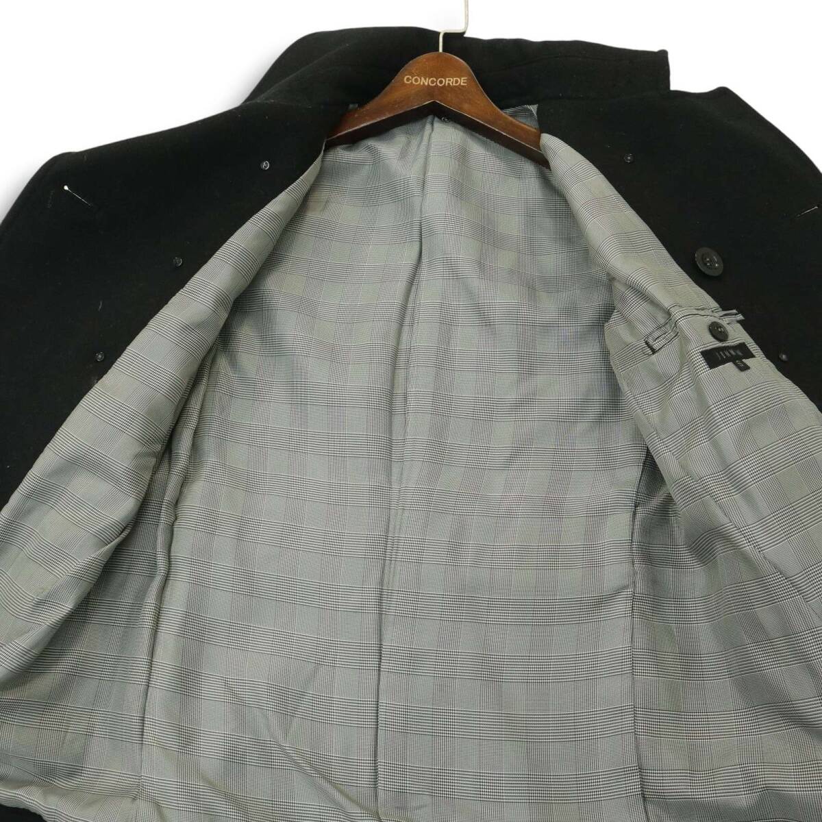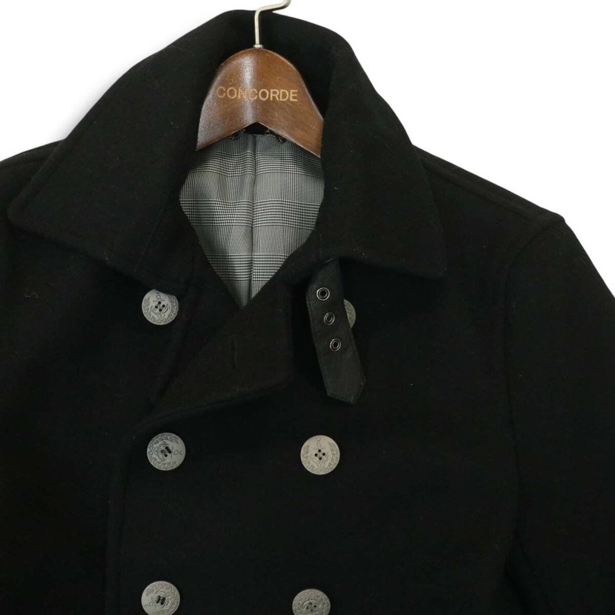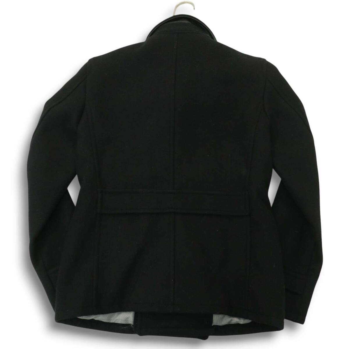 JUNMEN ジュンメン 秋冬 牛革 リアル カウ レザー使い★ メルトン ウール Pコート Sz.S メンズ 黒