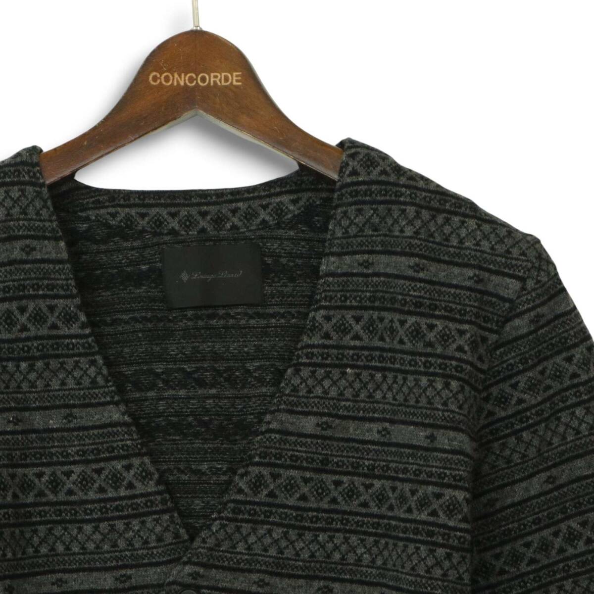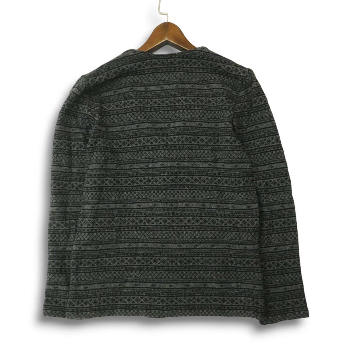LOUNGE LIZARD ラウンジリザード 秋冬 ウール★ ジャガード柄 総柄 ニット カーディガン Sz.2 メンズ グレー 日本製