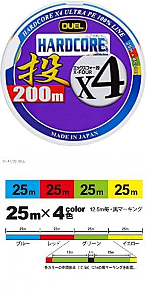 DUEL ハードコアX4投 200m1.5号4本組PE 4色分け