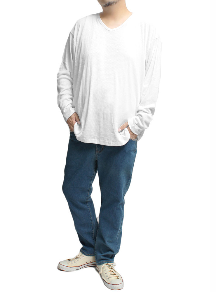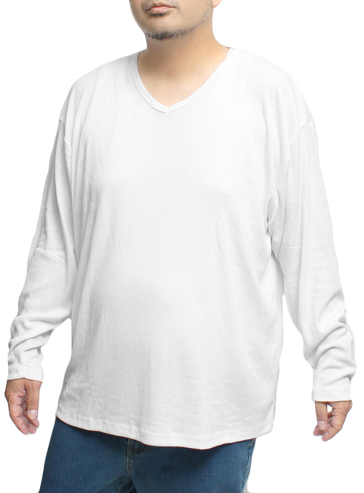 | 商品名 | 【新品】 4L ホワイト 長袖Tシャツ メンズ 大きいサイズ 無地 テレコ素材 シンプル Vネック カットソー |