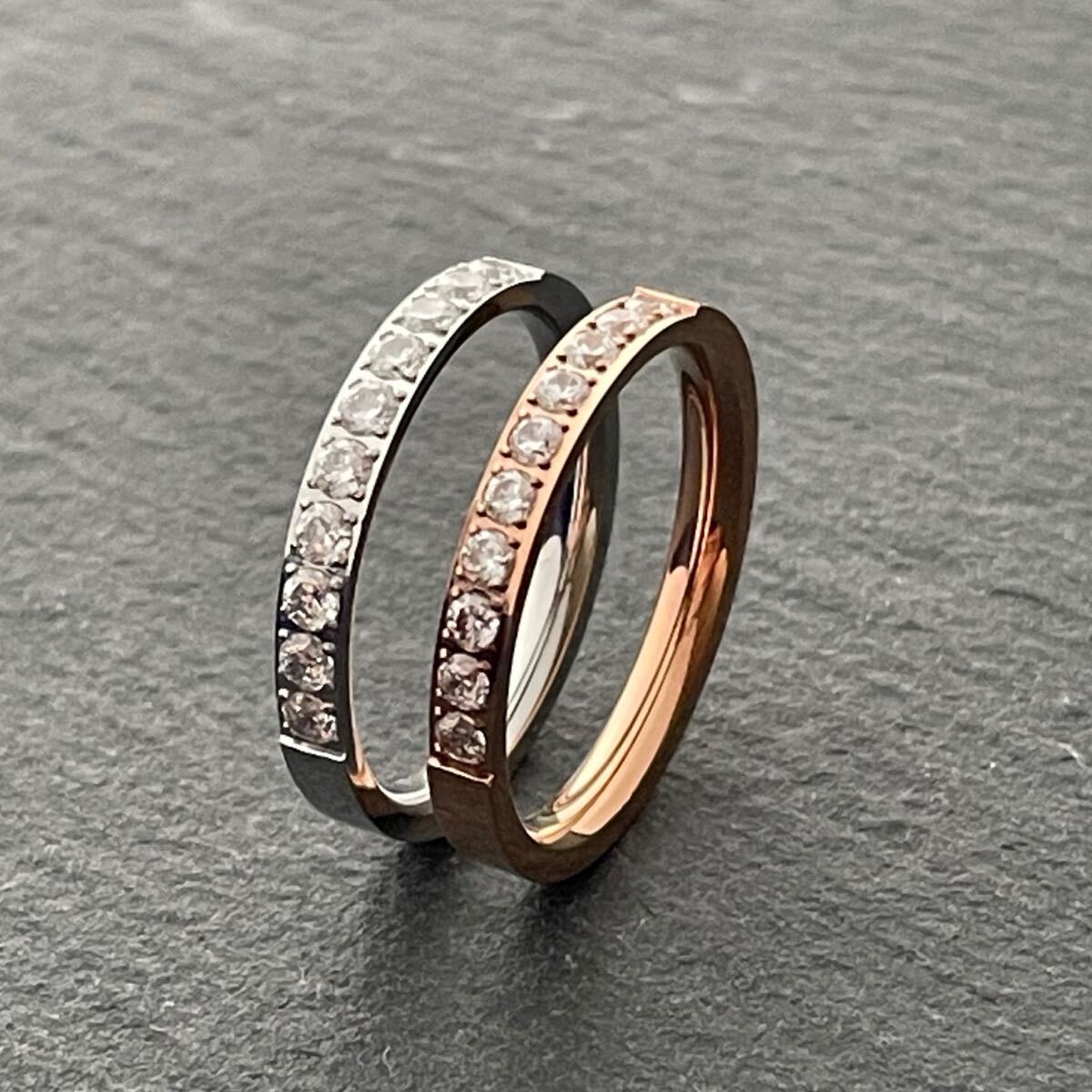 #ラインストーンリング #ハーフラインストーン #czダイヤリング #ステンレスリング #ステンレス指輪 #インデックスリング #ピンキーリング #インデックスリング #ミドルリング #ミドルフィンガーリング #サムリング #アニバーサリーリング #重ね付けリング #サージカルステンレス316L #金属アレルギー対応