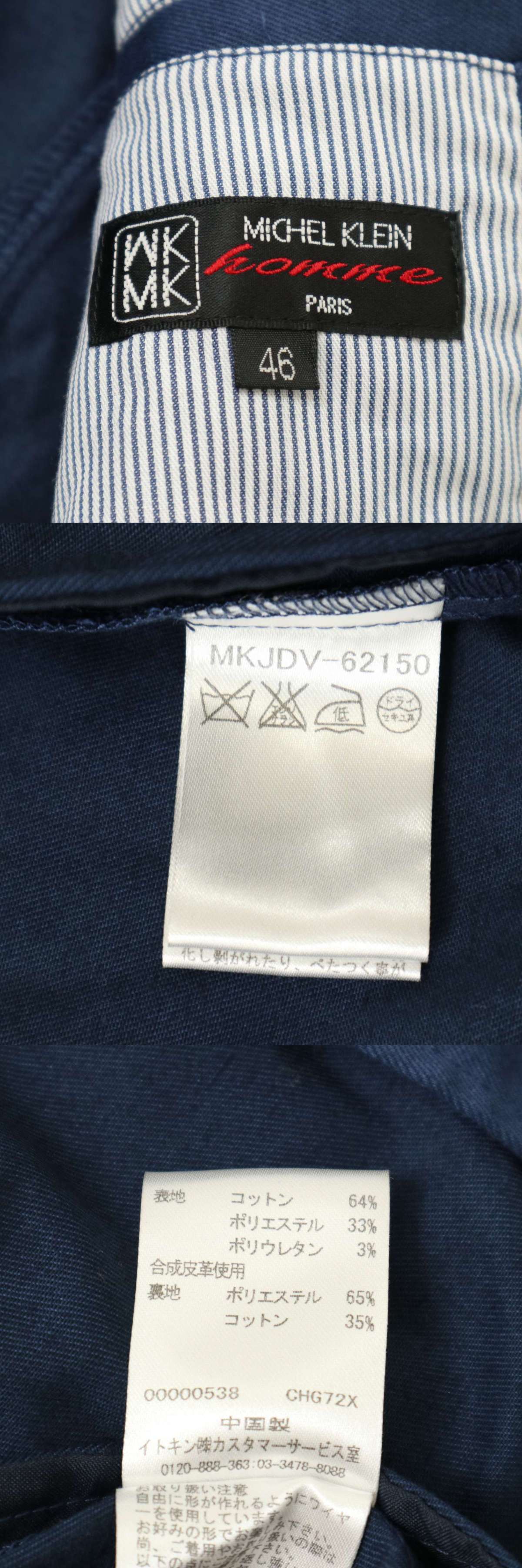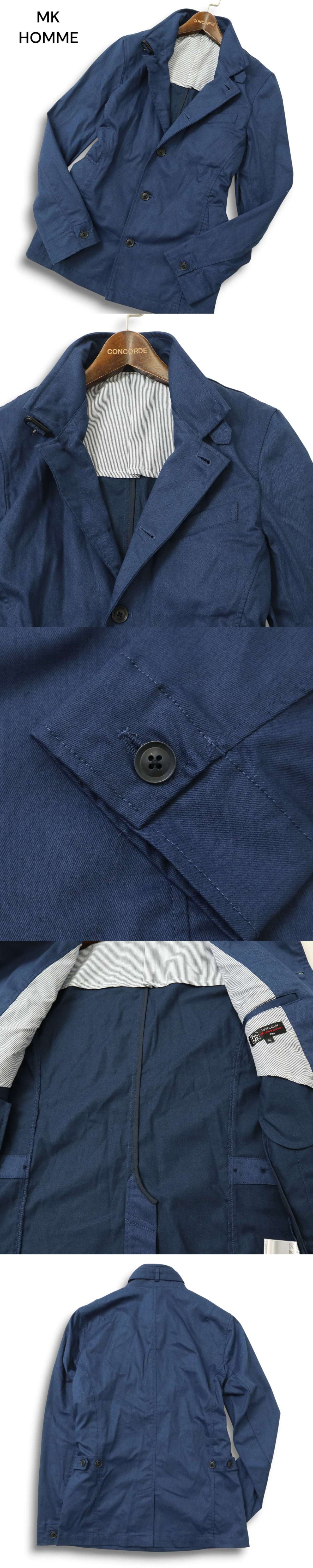 MK HOMME ミッシェルクラン オム 通年 背抜き★ コットン スリム ジャケット Sz.46 メンズ ネイビー