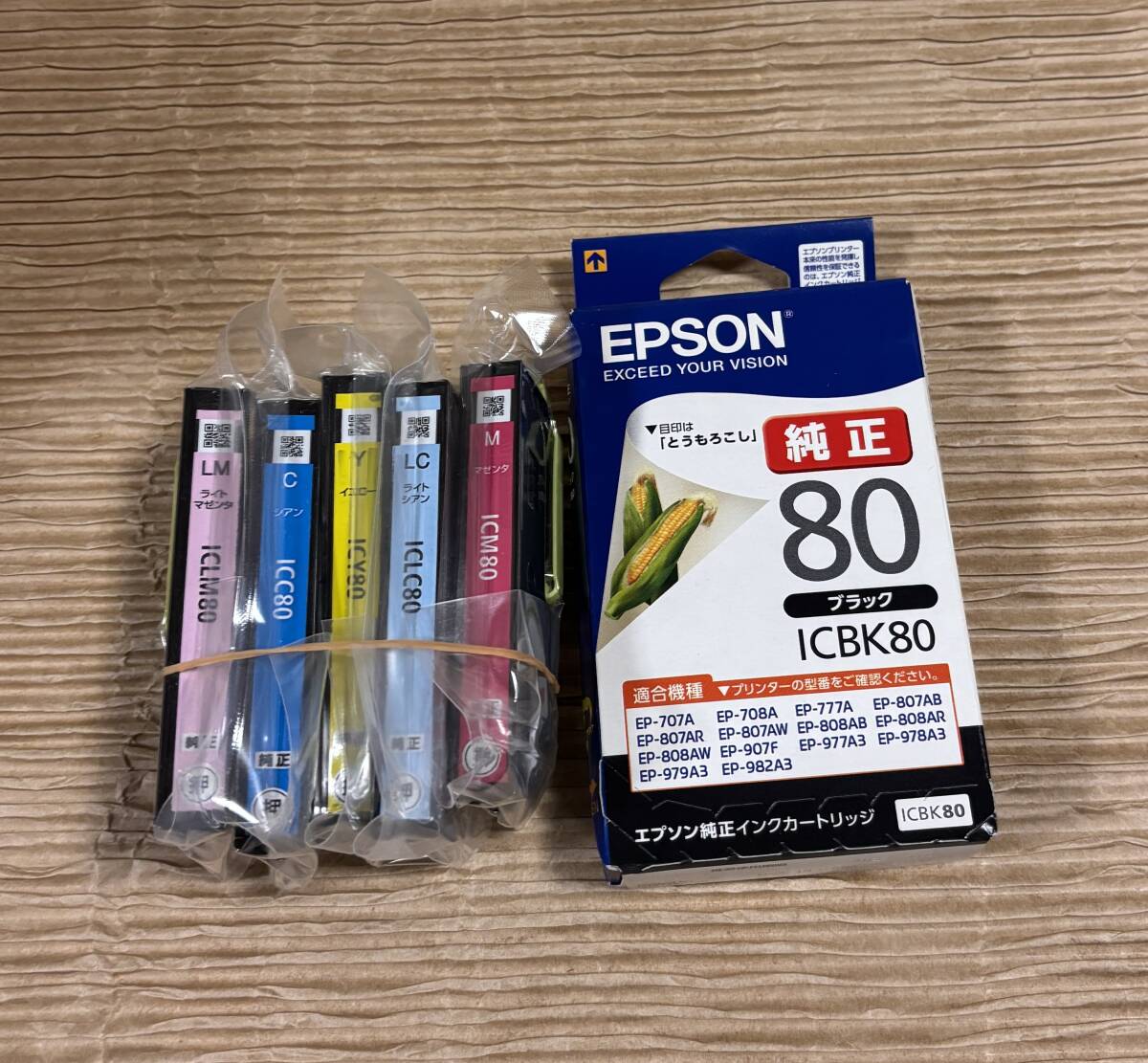 EPSON純正インクカートリッジ「IC6CL80」ICBK80 ICY80 ICC80 ICM80 ICLC80 ICLM80 6本セット IC80 とうもろこし 未使用新品です。 ※取付期限2026.08