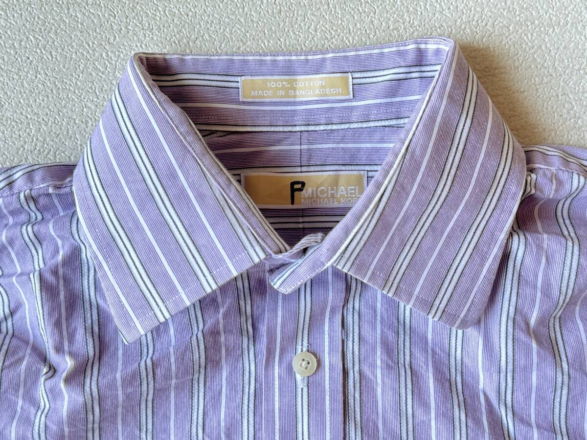 MICHAEL MICHAEL KORS マイケル マイケルコース USA直輸入 古着 長袖 胸ポケット付き ストライプ シャツ メンズ L パープル