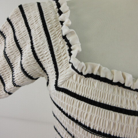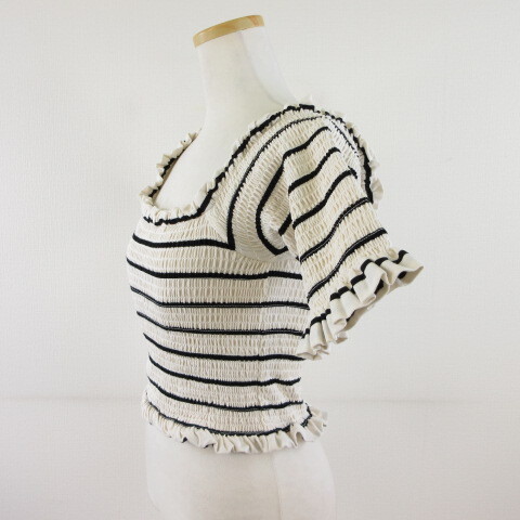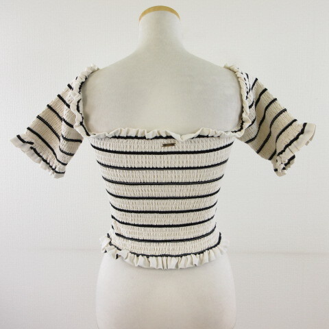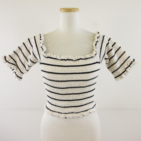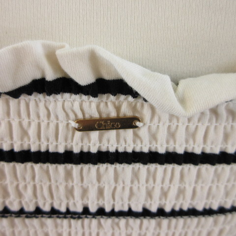 チコ Chico カットソー 半袖 クロップド丈 ショート丈 ボーダー ストレッチ オフホワイト 白 *T487 レディース