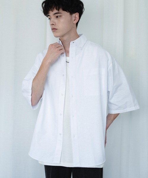 参考商品名:ビッグシルエット オックスフォード ボタンダウン半袖シャツ