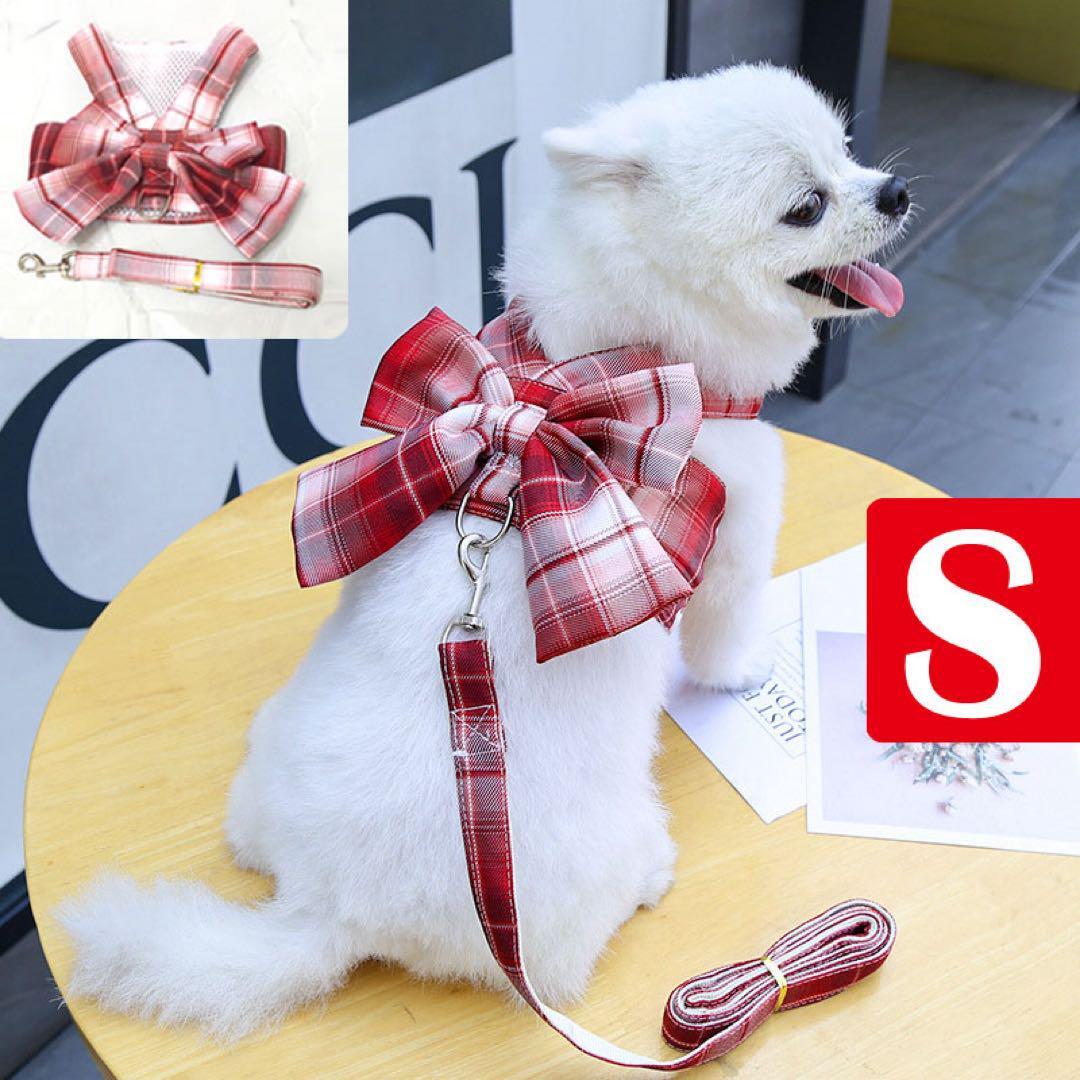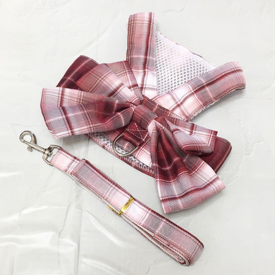 大きなリボン付きのハーネス&リードでおしゃれ度アップ!