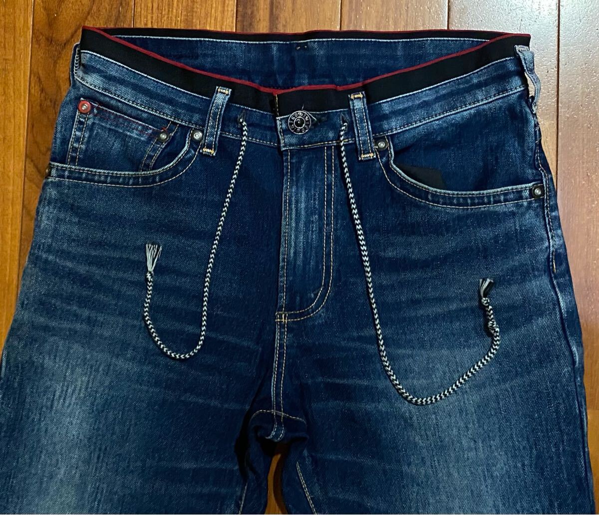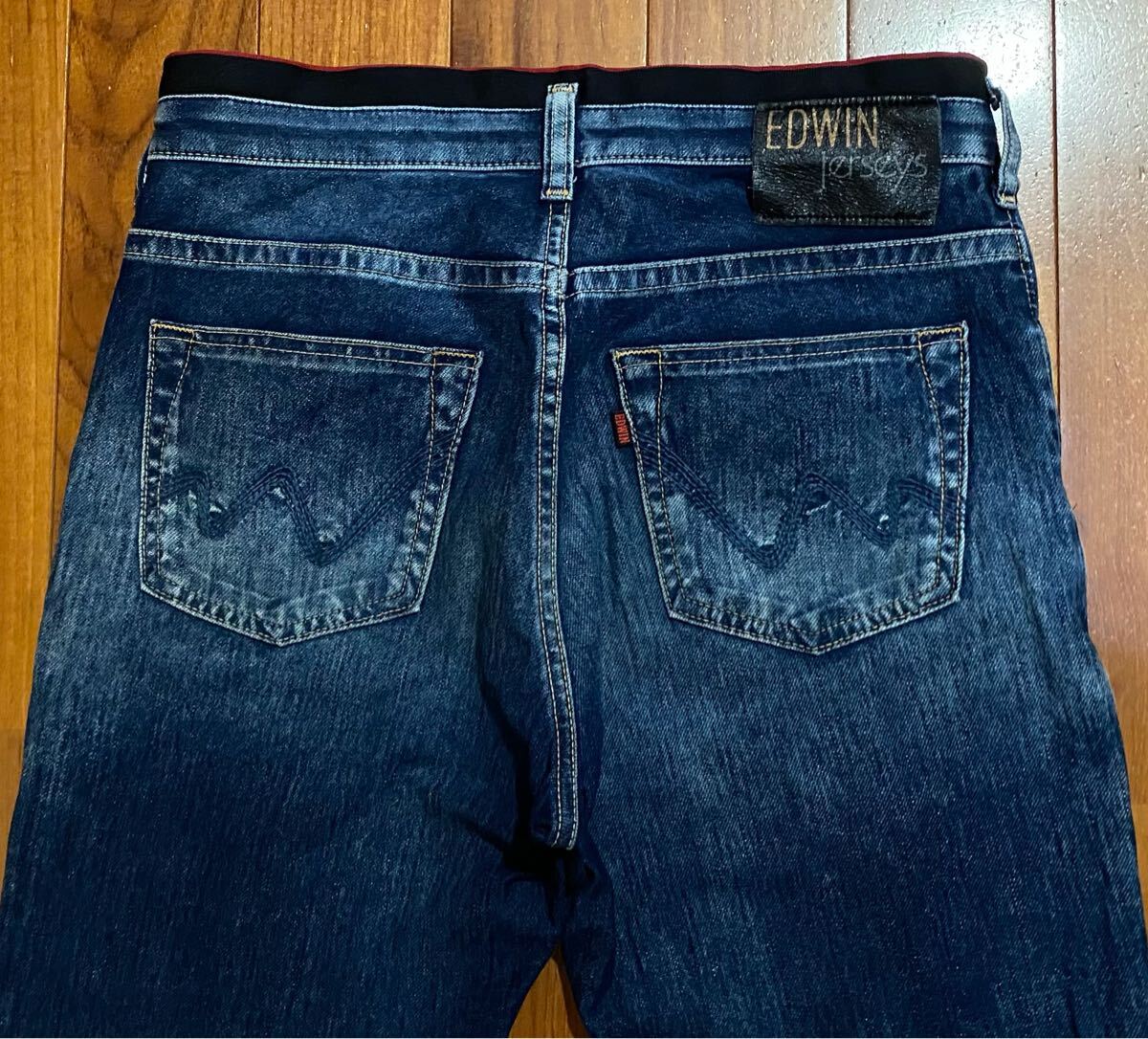 エドウィンのジャージーズ ストレッチデニムパンツ、ER003です。色はインディゴブルーです。USEDですが状態は良いです(10段階中8程度)。生地は表地はストレッチ入りで綿75%、ナイロン20%、ポリウレタン5%、ウエストリブはポリエステル95%、ポリウレタン5%です。ジッパーフライ、裾はチェーンステッチです。正規品です((株)エドウイン商事、日本製)。サイズはSでウエストは重ねずに平置きで約77cm、ヒップ約100cm、股上約27cm、股下約82cm、股下15cmのふともも部分約51cm、裾まわり約39cm、重量約560gです。発送はゆうパケットポストになります。