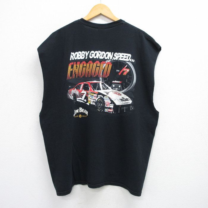 【商品名】 XL★古着 ノースリーブ ビンテージ Tシャツ メンズ 00年代 00s レーシングカー 大きいサイズ コットン クルーネック 黒