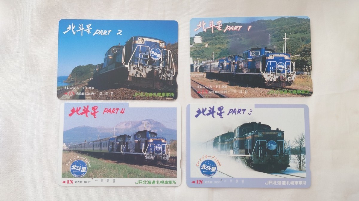 △JR北海道△寝台特急北斗星 シリーズ全4枚一括△記念オレンジカード1穴使用済み