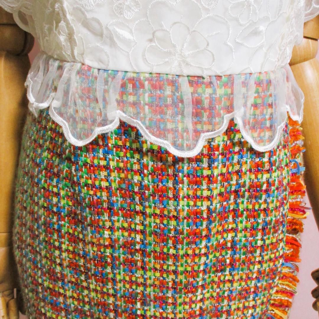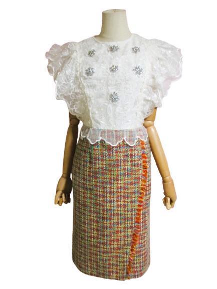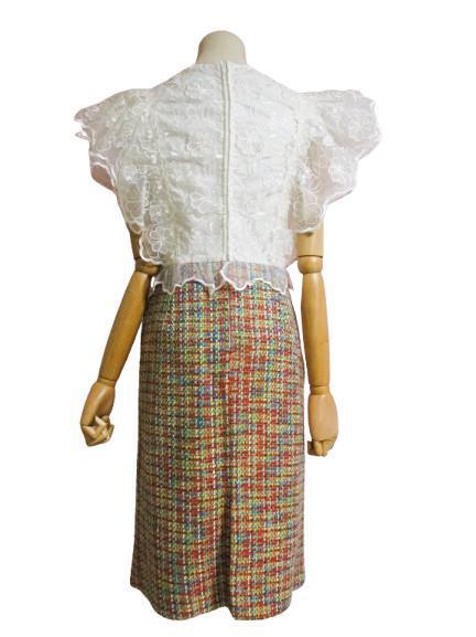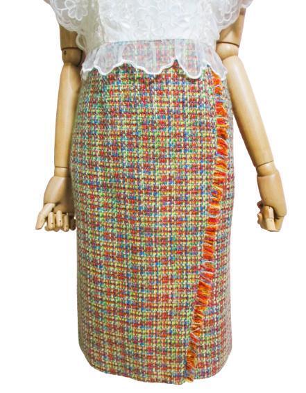 ストレートラインのスカートは いろいろなお色がミックスされたツィード素材