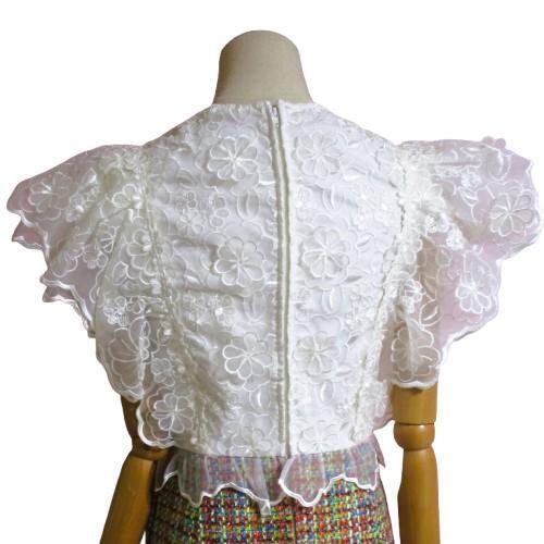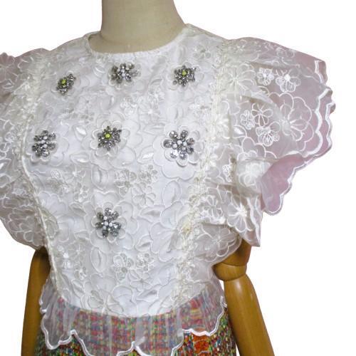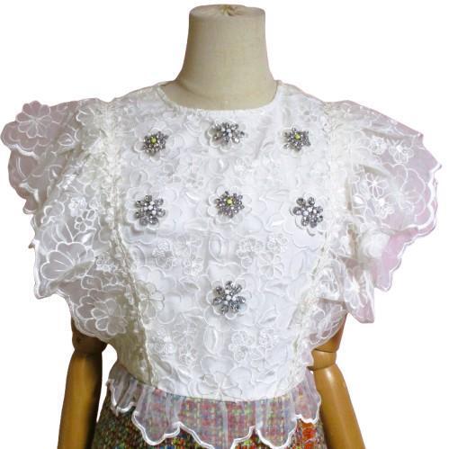 オーガンジーに刺繍を施した繊細なレースを贅沢に使用し きらきらビジューがあしらわれた素敵なワンピース